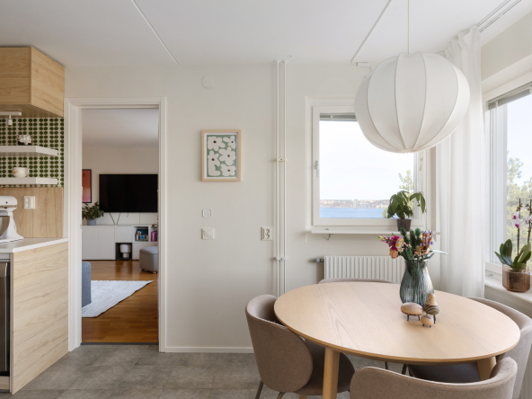 Välkommen till denna exklusiva bostad i Nacka Strands hyllade projekt No.4. Här möter dig ljusa materialval i harmoni med naturen, inklusive kalkstensbänkskivor och helkaklade badrum i natursten. Genomgående planlösning med vackra brädgolv av ljuspigmenterad ek och golvvärme. Högsta läge i byggnaden, med en fantastisk panoramautsikt och en balkong som vetter mot vattnet, vilket gör att ljuset flödar in och skapar en magisk atmosfär.