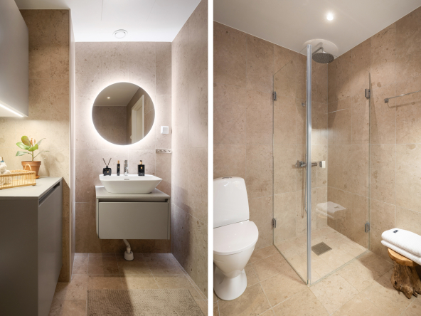 • Exklusivt badrum med påkostade materialval