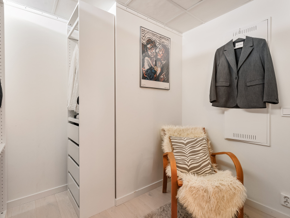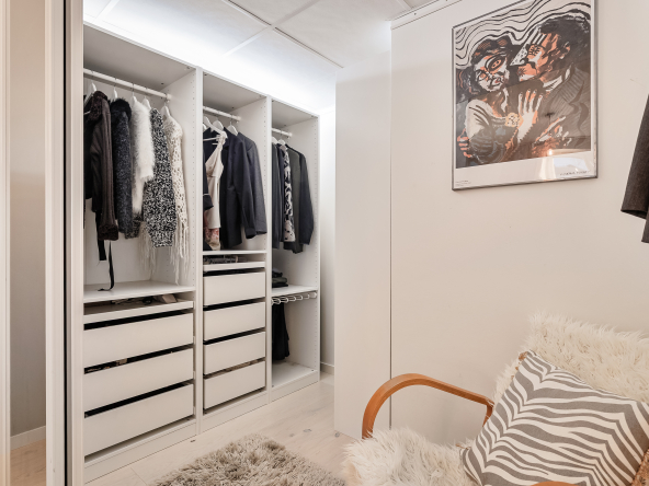 Här har du ett drömboende med milsvid utsikt och magiskt Golden hour ljus samt vackra solnedgångar! Välkommen till en modern och stilren tvåa där varje kvadratmeter är noggrant planerad för att maximera komfort, ljus och livskvalitet. Du har en öppen och social planlösning mellan kök och vardagsrum, vilket bjuder in till mysiga sociala sammanhang. På det bjuder den generösa balkongen också in till trevliga stunder med nära och kära, där det dessutom kan avnjutas ett fantastiskt ljus under golden hour och vackra solnedgångar. Så detta boende är den perfekta platsen för avkoppling eller festligheter med vänner. På balkongen är det tillåtet med både gasol- och elgrill, vilket ger sommarkvällarna den lilla extra gnistan. Bostaden är utöver detta belägen högt upp i fastigheten på 8:e våningen och erbjuder attribut som stora fönsterpartier, en härlig känsla av rymd, vitlaserade ekgolv samt ett tidlöst HTH-kök med exklusiva materialval såsom svart granit på bänkskiva och stänkskydd. Hela lägenheten blir med allt detta elegant rakt igenom. Sen till det rymliga badrummet, där bjuds det på både tvättmaskin och torktumlare samt gott om förvaring – lika lyxigt som praktiskt. Och för dig som uppskattar förvaring eller extra yta så finns dessutom en väl tilltagen walk-in-closet som nås från sovrummet.