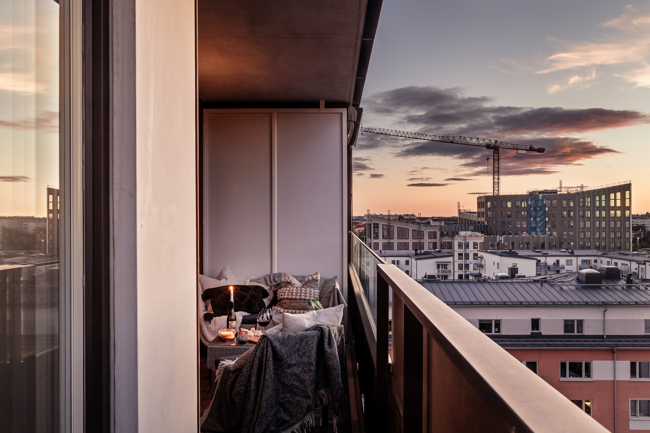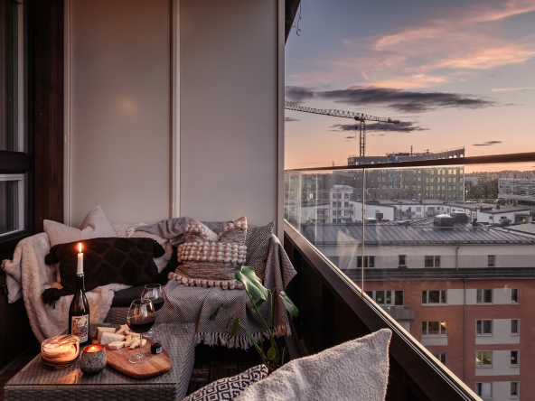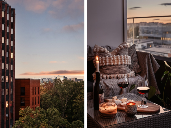 • Läget på balkongen kan erbjuda Golden hour ljus samt vackra solnedgångar