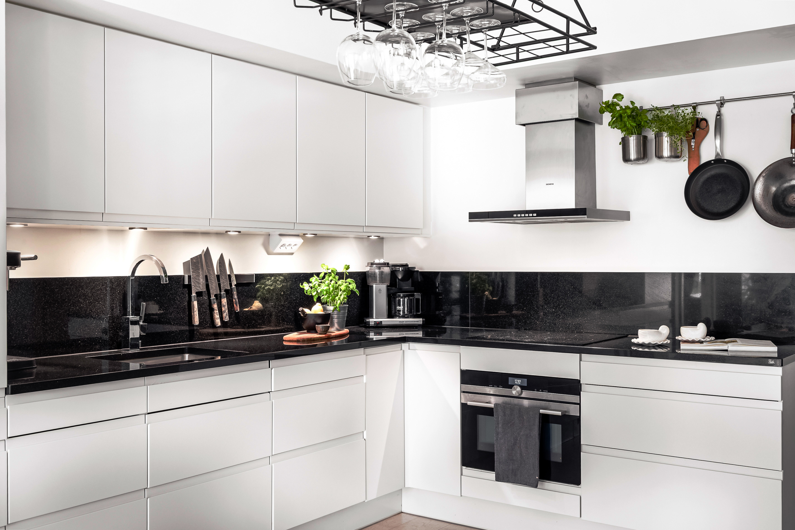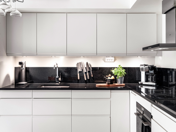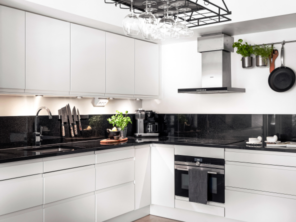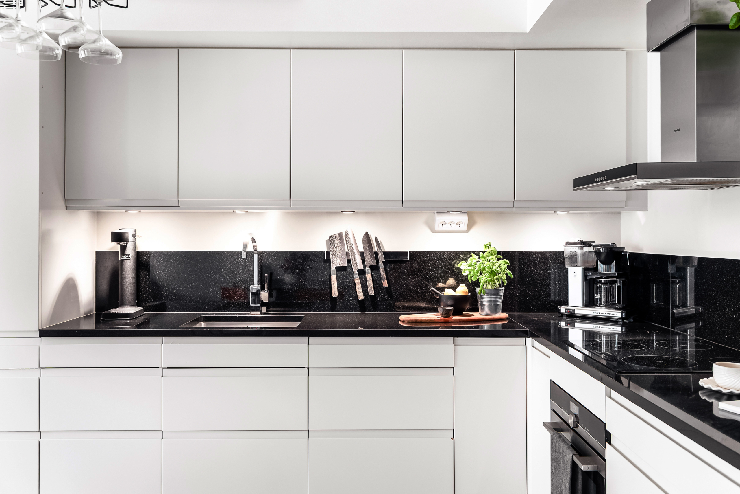 • Bänkskiva och stänkskydd i svart granit