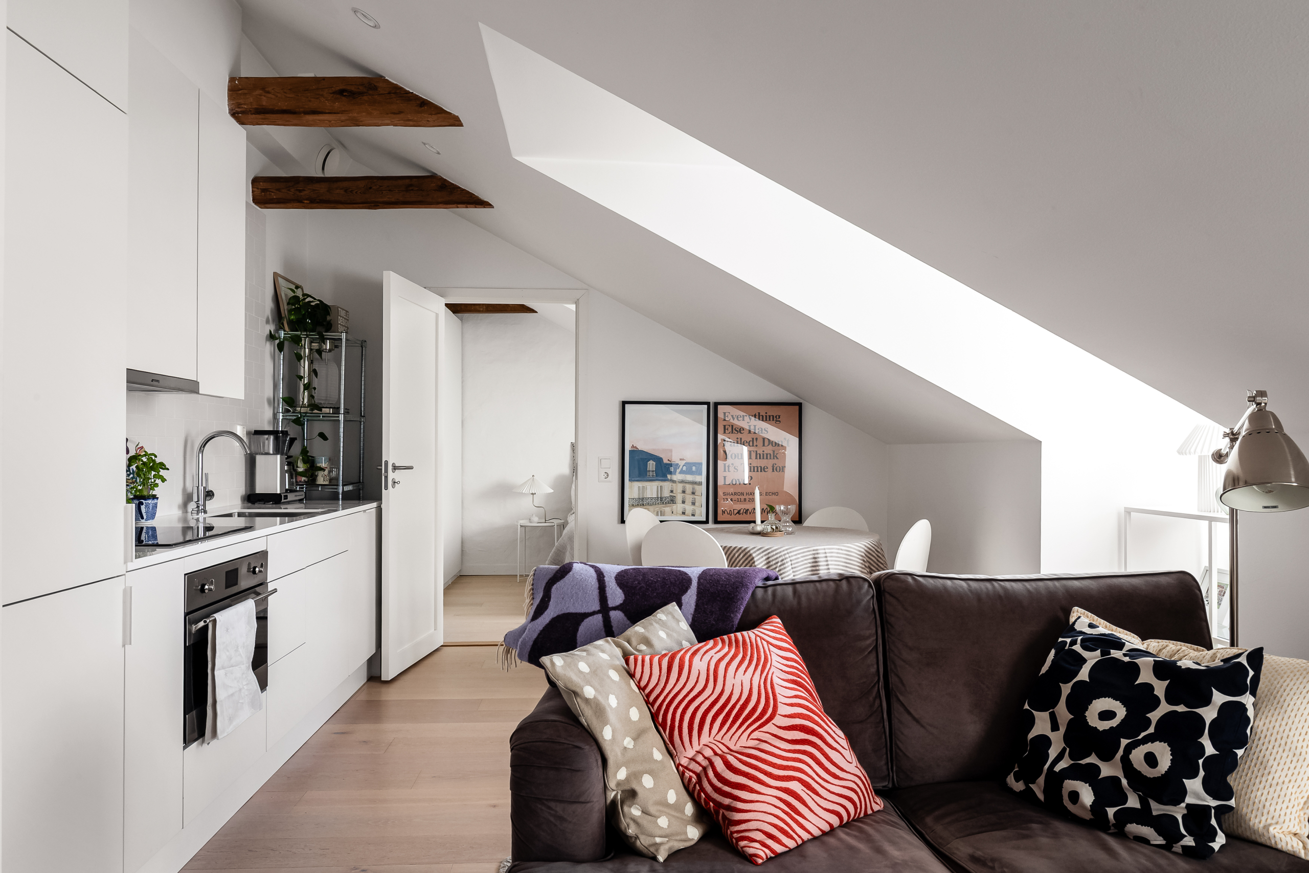 Välkommen till denna trevliga och stilfulla vindsvåning från 2017 – en perfekt kombination av charm från 30-talet och modern exklusivitet. Här möts bevarade takbjälkar och tidlös nordisk design i designlinjen Scandinavian, där hög standard och noggrant utvalda material skapar ett hem utöver det vanliga!