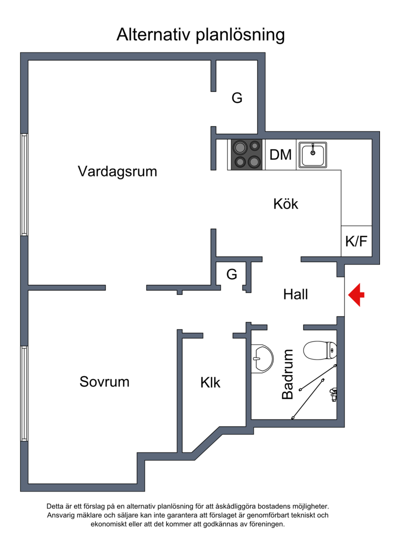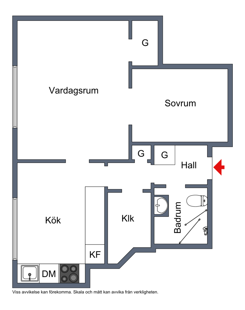 • Kommentar till Areakälla: Disponeras som 1,5 rum och kök. 1 rum och kök enligt lägenhetsförteckning.