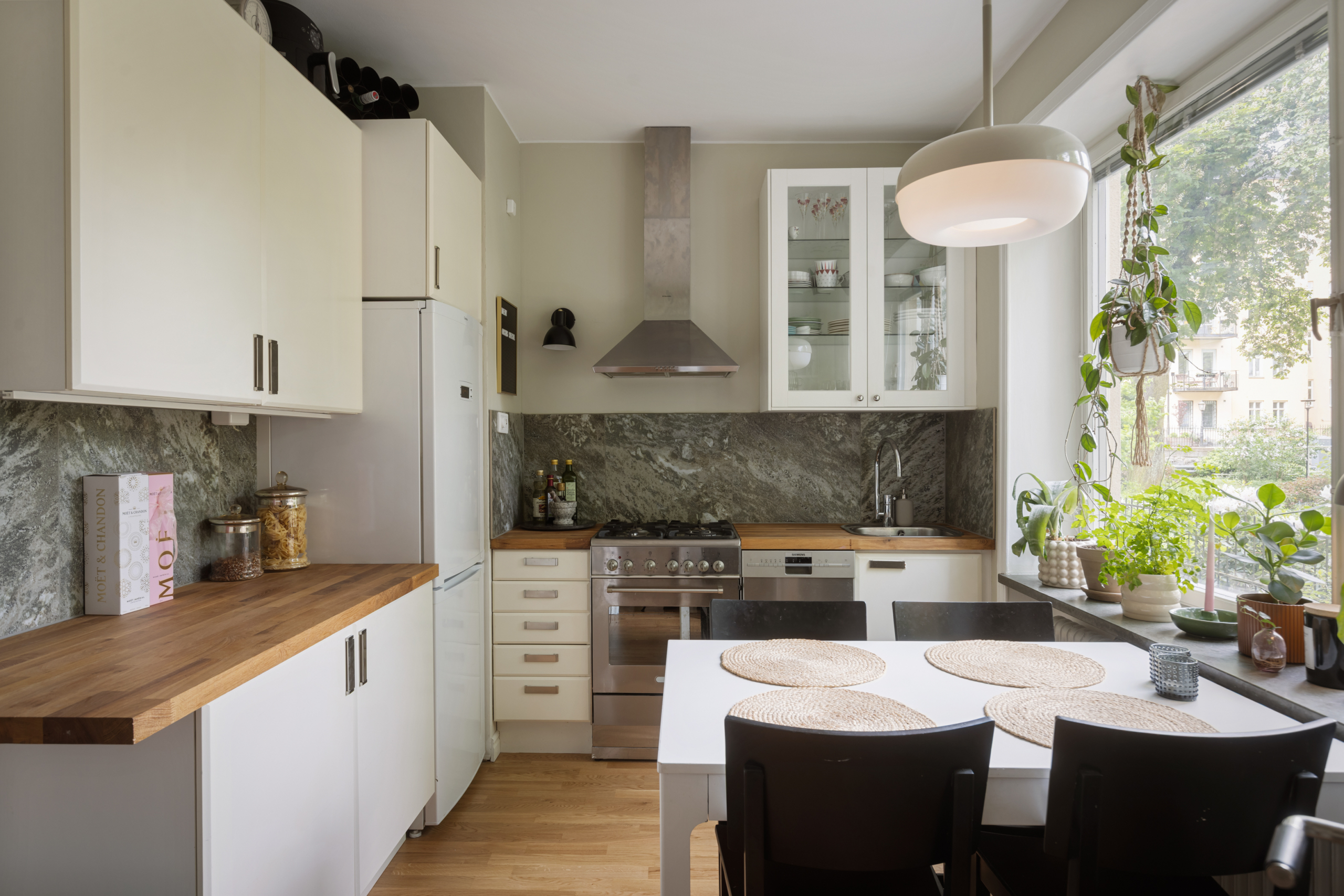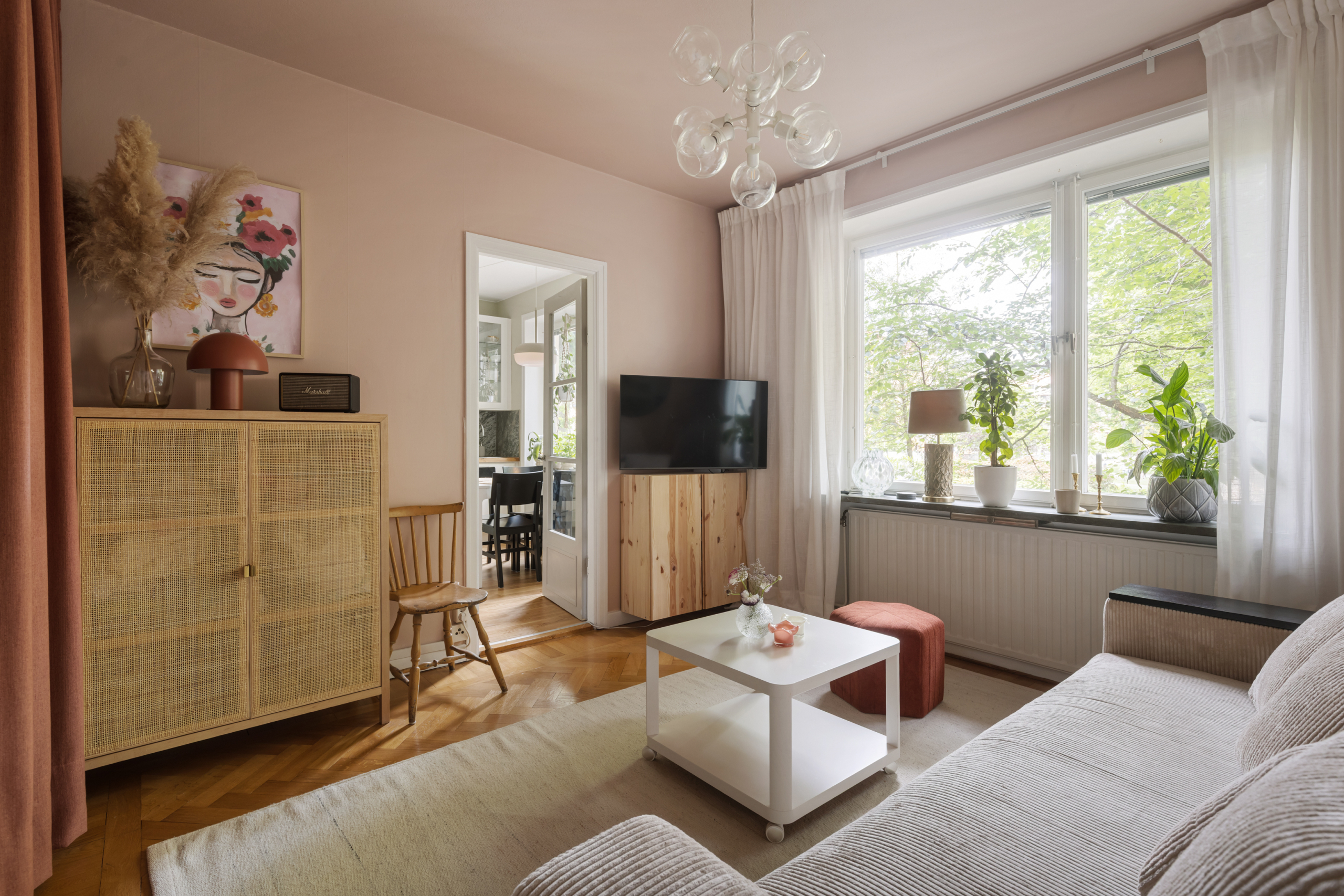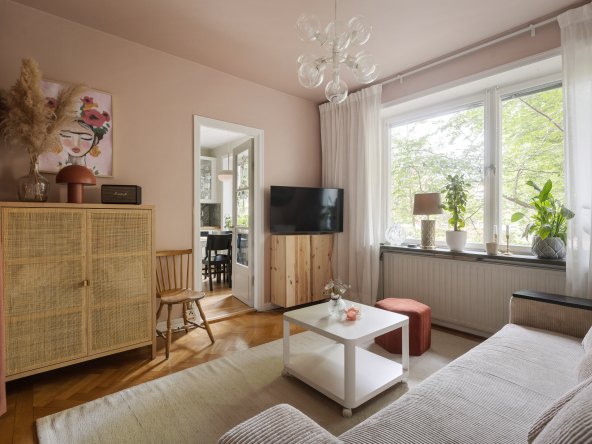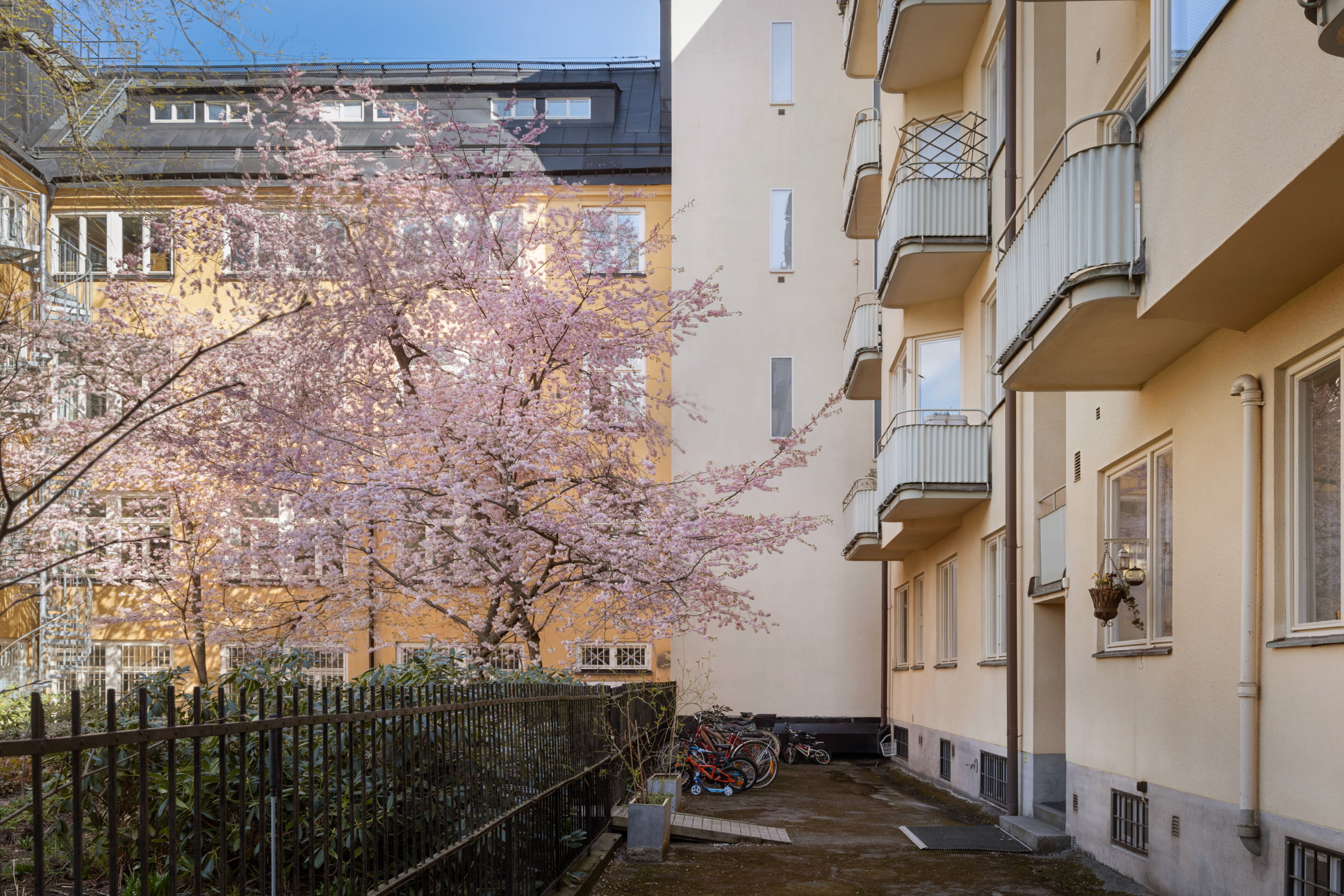 Välplanerad 1,5:a med fantastisk utsikt mot enbart innergård och grönska – och körsbärsträd under våren – på populär adress nära Odenplan! Välkommen till denna stilfulla och smart planerade 1,5:a där varje kvadratmeter är genomtänkt. Här får du stora fönsterpartier, vackert bevarad fiskbensparkett och utsikt mot lummiga Enkehusparken – helt utan insyn. På våren blommar körsbärsträden utanför och skapar en idyllisk atmosfär och känsla. Lägenheten har ett mysigt och rofyllt vardagsrum samt ett välutrustat kök där bänkskiva, stänkskydd och golv är nytt från 2024. Det rymliga sovrummet rymmer en dubbelsäng och det finns en generös walk-in-closet precis intill – perfekt för dig som uppskattar ordning och gott om förvaring. På det får du ett helkaklat badrum som är fräscht och modernt. Här bor även du mot en lugn innergård och park, samtidigt som du har stadens puls runt hörnet. Odenplan ligger bara fem minuter bort och där finns tunnelbana, pendeltåg och bussar samt all tänkbar service. Så smidigare och bekvämare blir det inte!