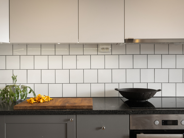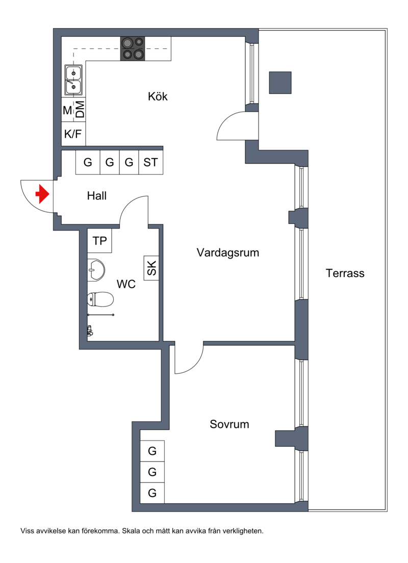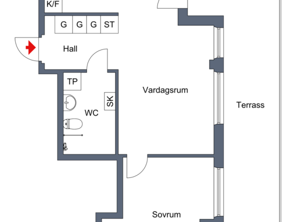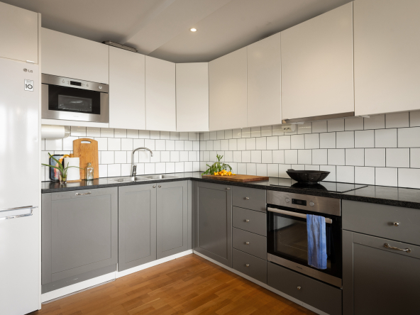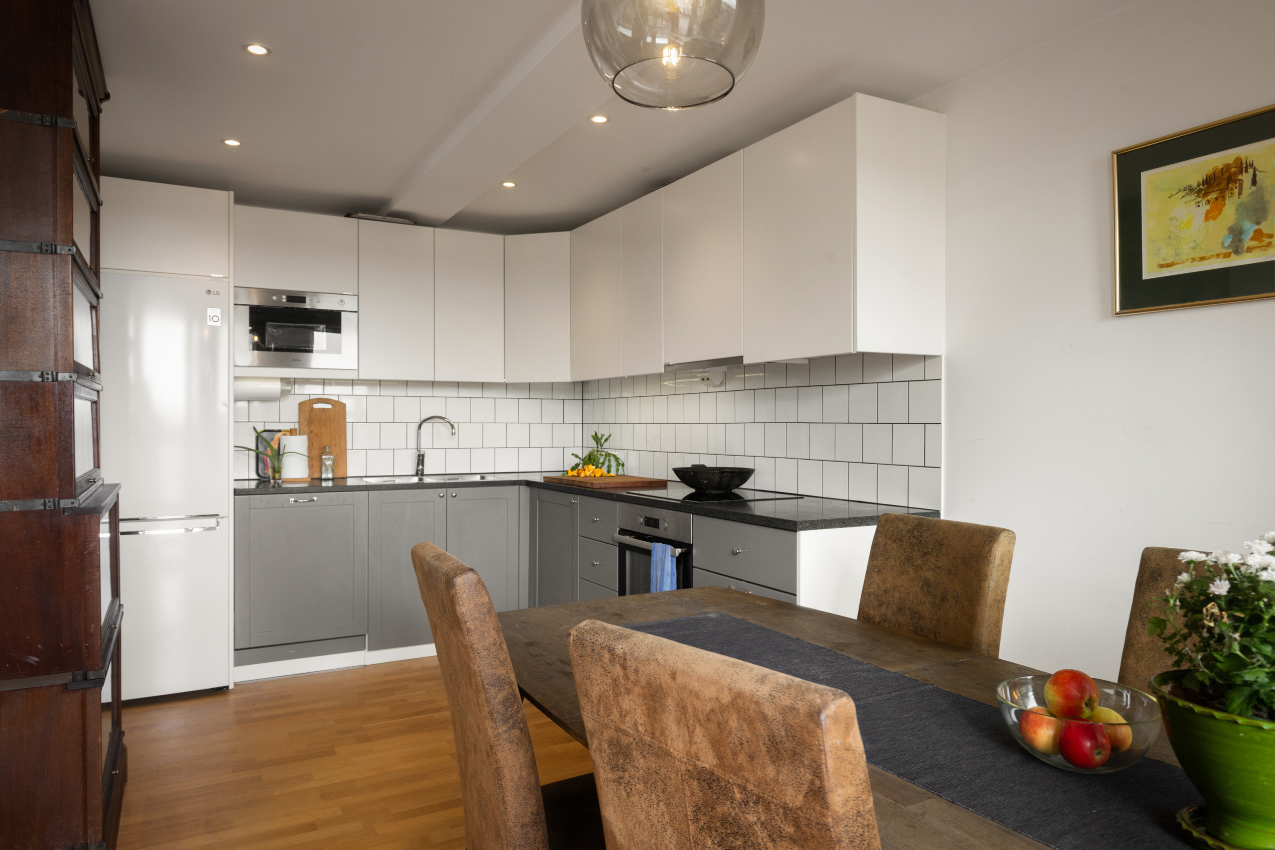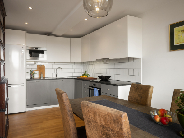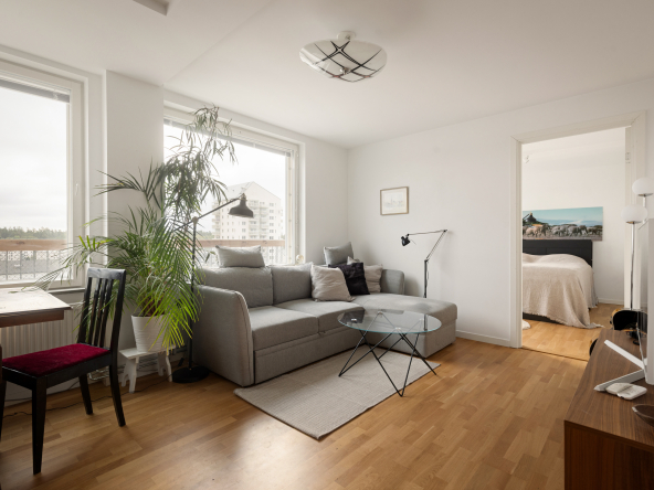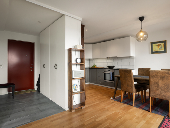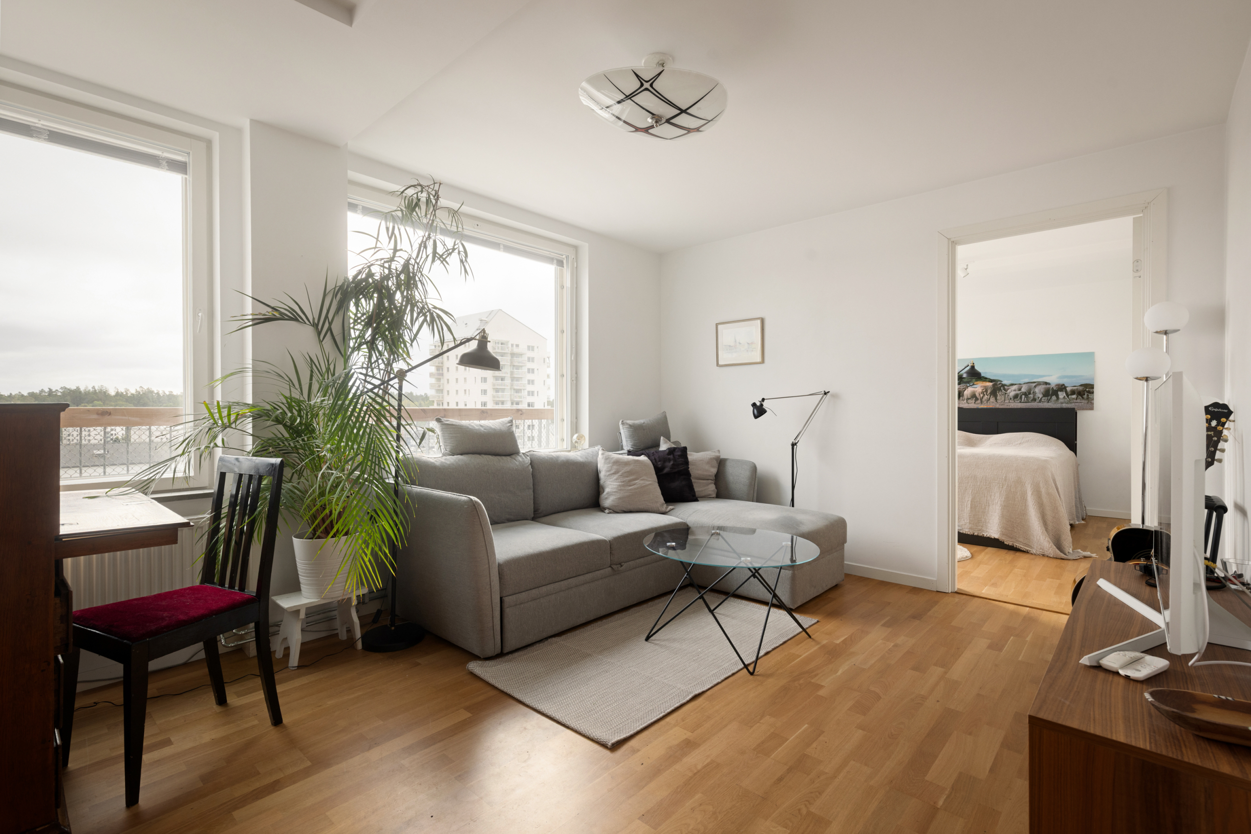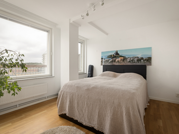 Wow är känslan som infinner sig när man kliver in i lägenheten – och framförallt när man stiger ut på den 13 meter långa terrassen i bästa söderläge. Här finns plats för både sociala stunder, odlingar och lugna stunder i solen med grönskan som fond. Med sina ca 20 kvm blir terrassen ett självklart extrarum under sommarhalvåret.