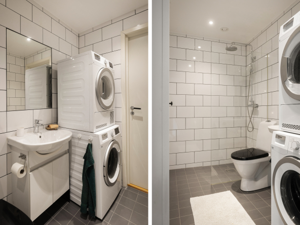 Föreningen äger marken och erbjuder dessutom en gemensam takterrass – perfekt för både privata tillställningar och gemenskap med grannarna. Dessutom finns det en tvättstuga trots att alla hem har tvättmaskiner, samt möjlighet till en garageplats.