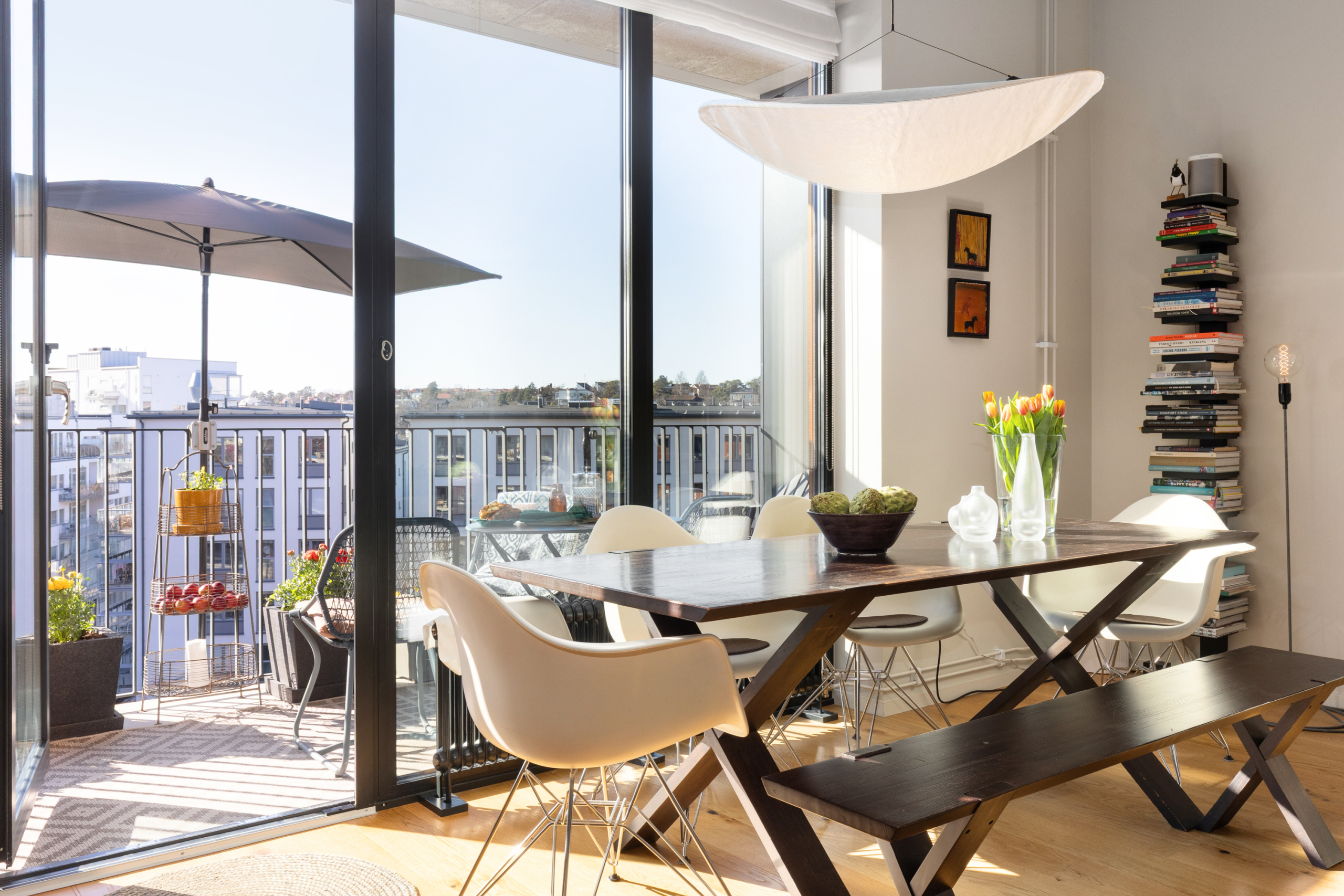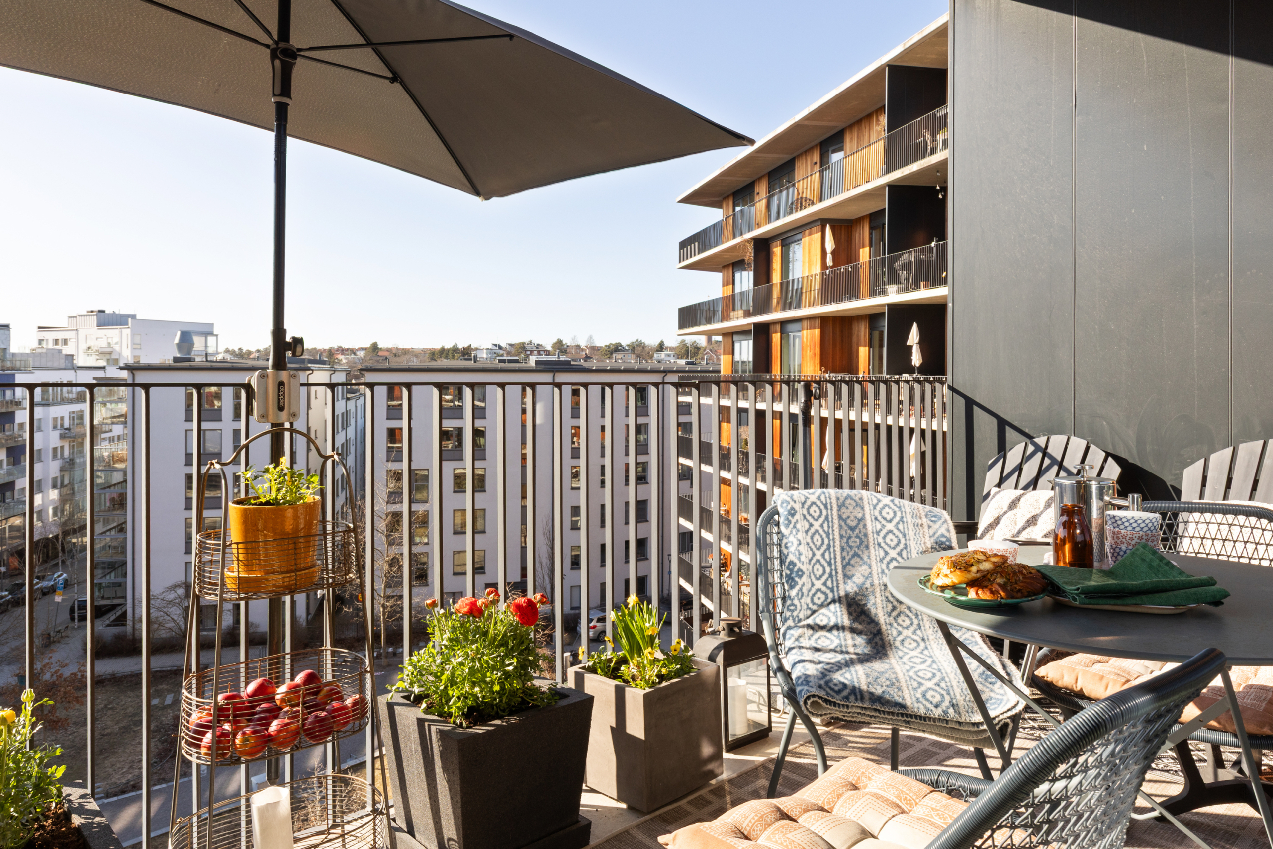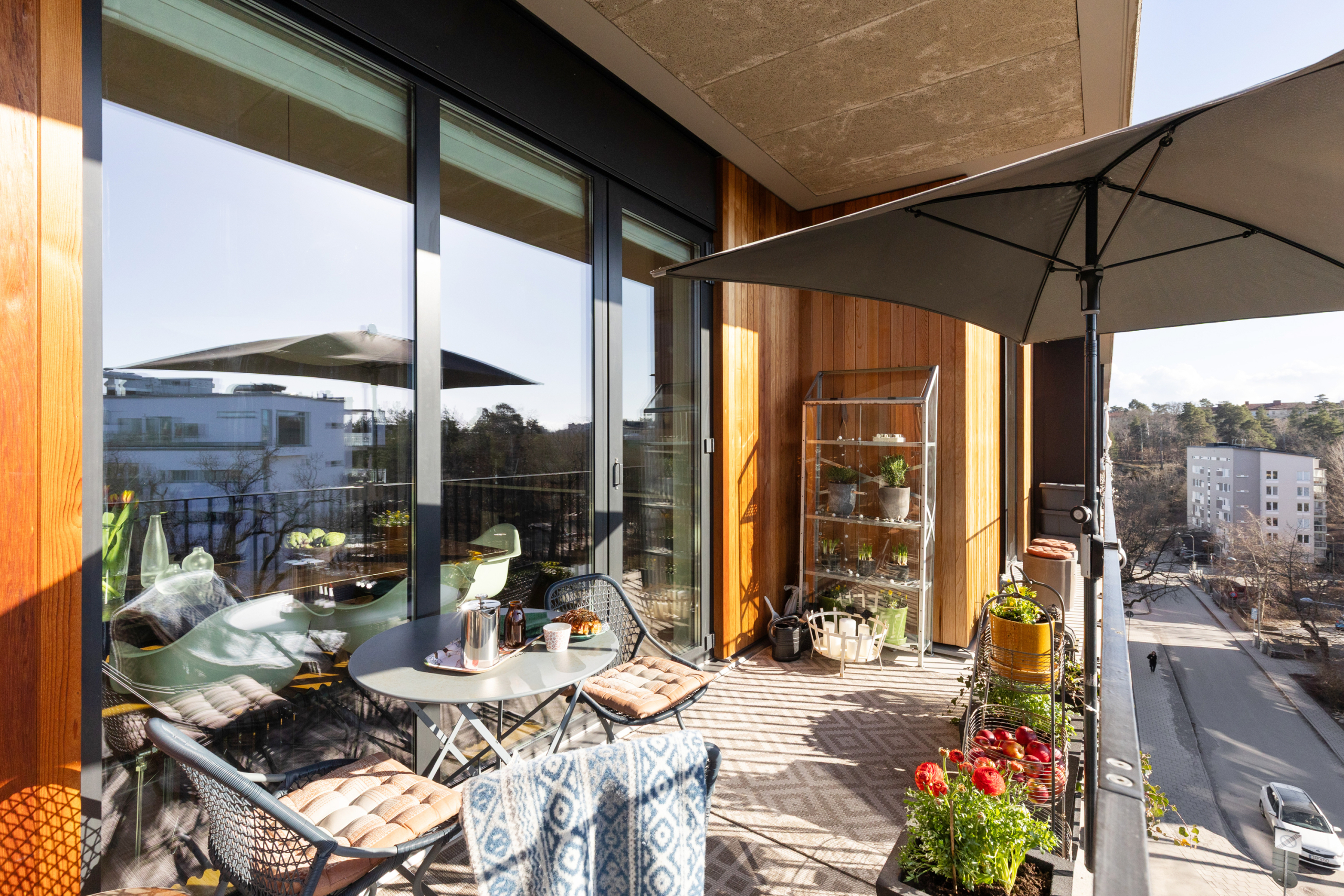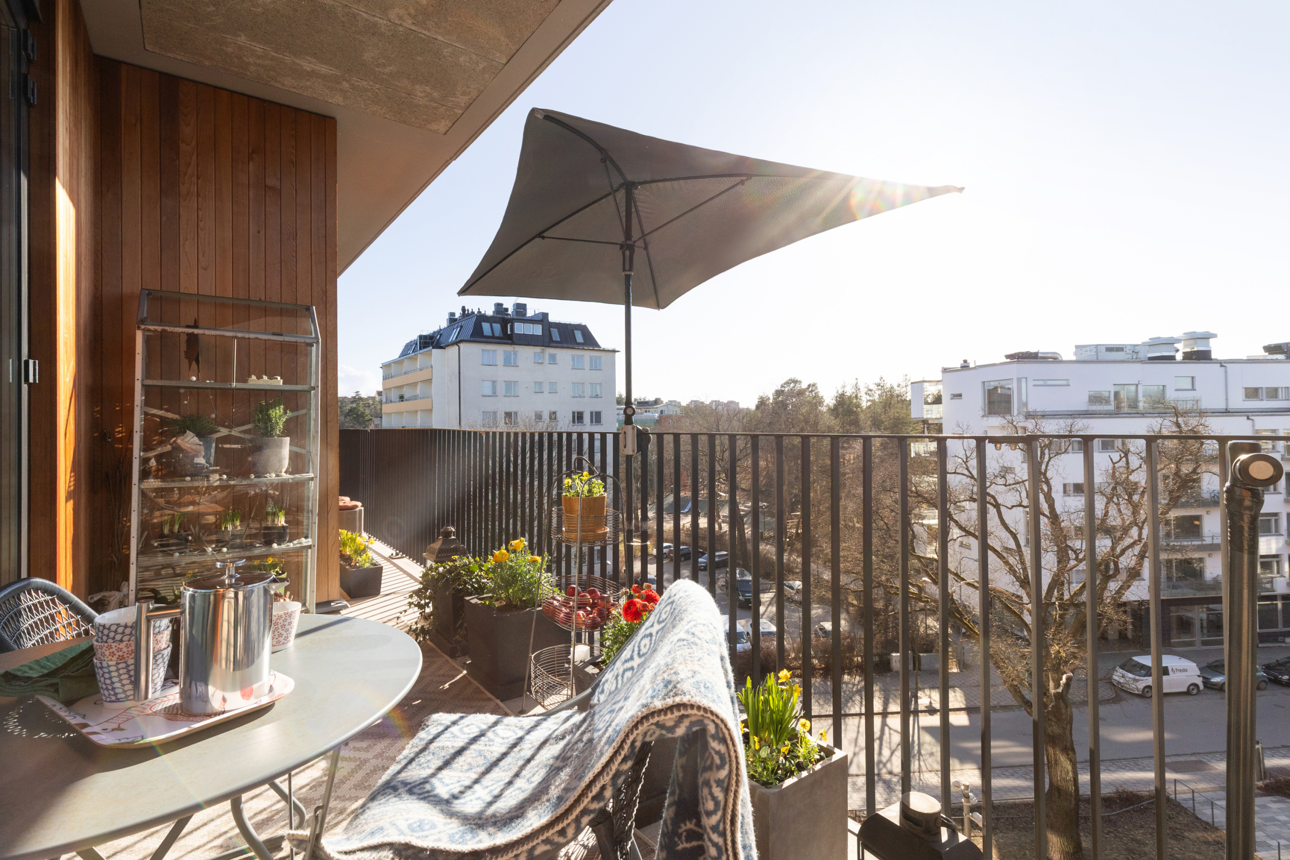 Arkitektritat av prisbelönta Andreas Martin-Löf, så är detta hem unik i sitt slag där året förlängs med den stora insynsskyddade terrassen i västläge som sträcker sig längs med hela lägenheten. Och du har en av få 2:or i hela huset som har 3 meter i takhöjd och den fria och underbara utsikten.