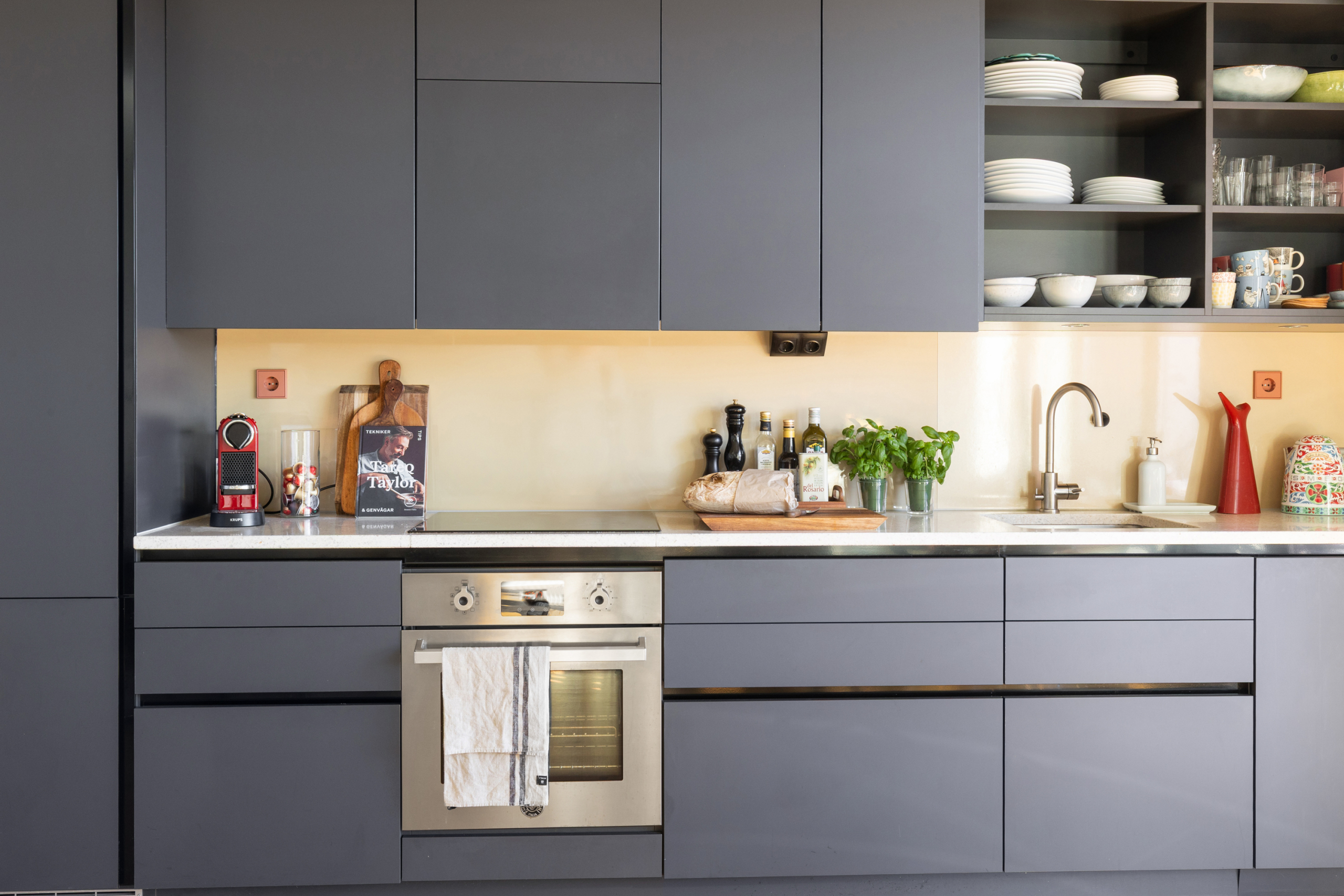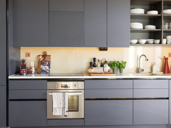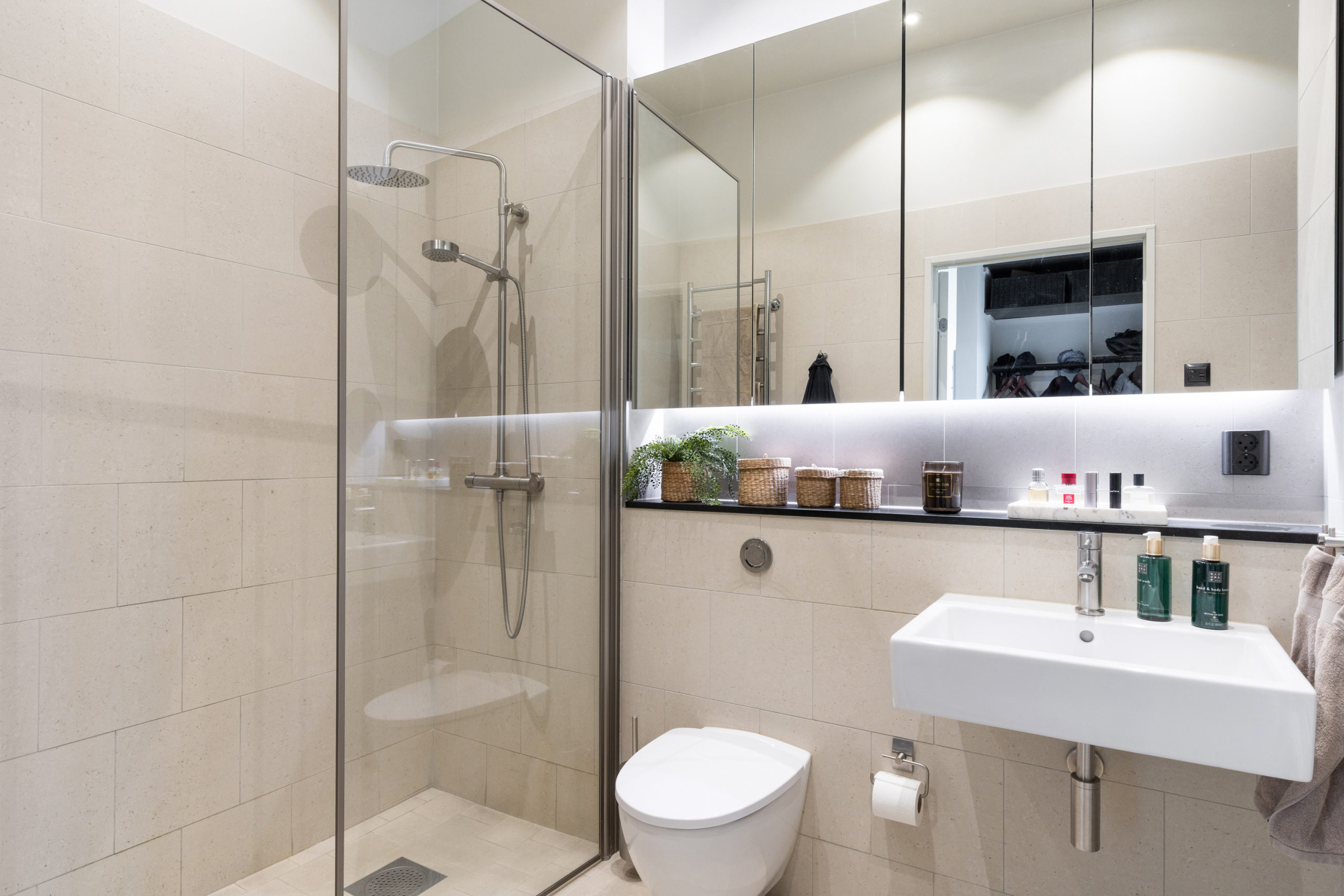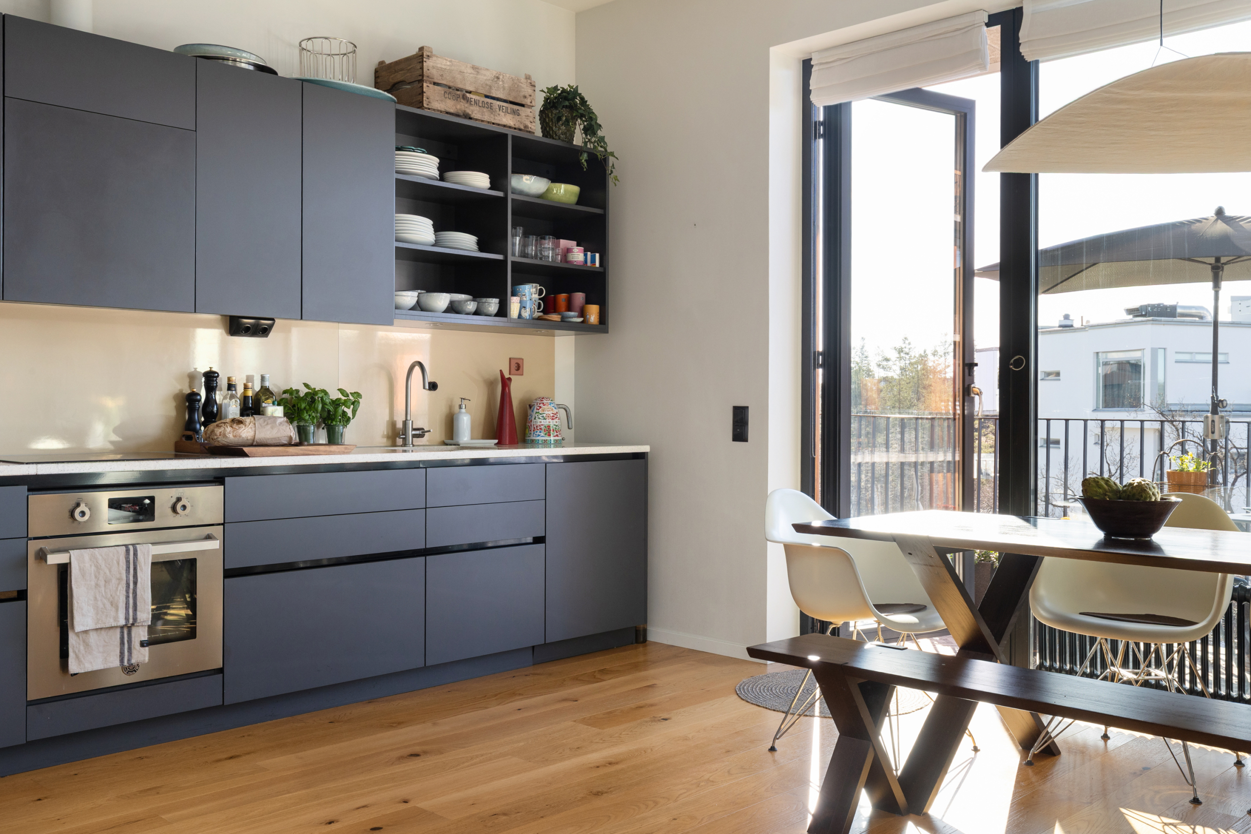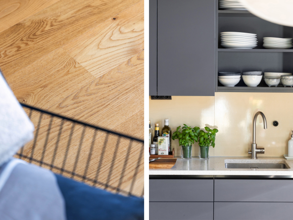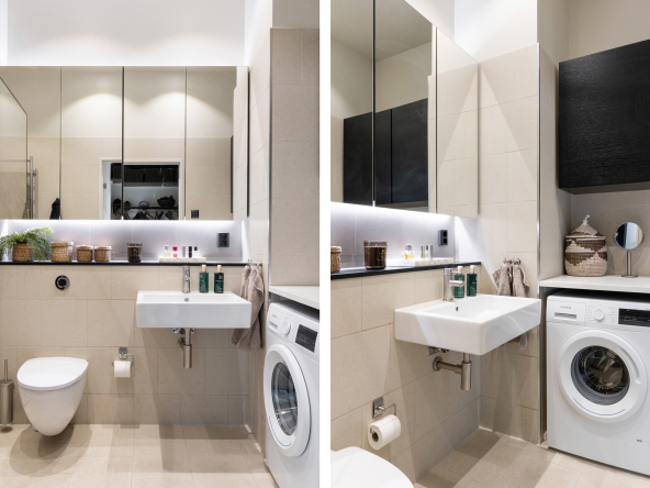 Den öppna planlösningen mellan kök och vardagsrum gör att bostaden är perfekt för att spendera de fina stunderna i vardagen med nära och kära samt att takhöjden får hemmet att kännas rymligare. Hela hemmet andas lyx med genomgående enstavsparkett, påkostat specialritat kök med bänkskiva i vit terrazzo och vitvaror från Bertazzoni, exklusivt badrum med generös förvaring.
