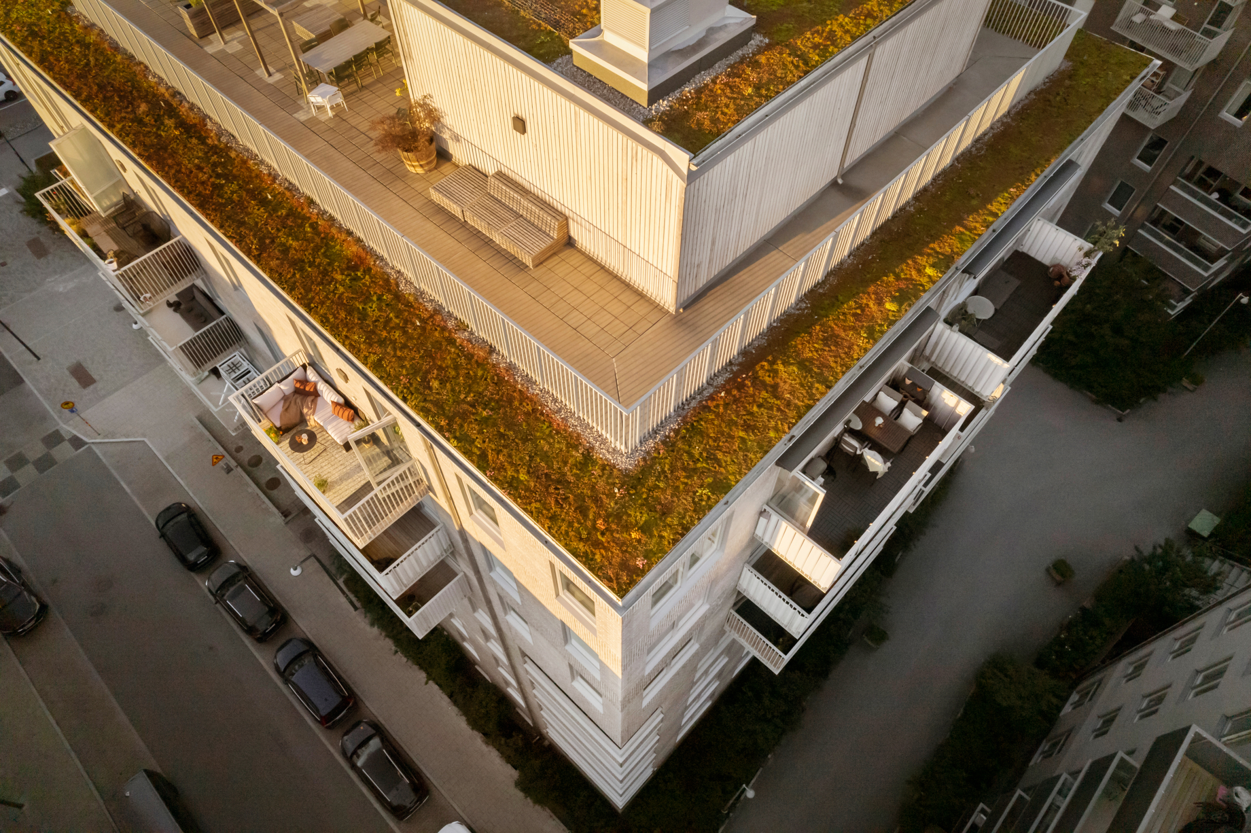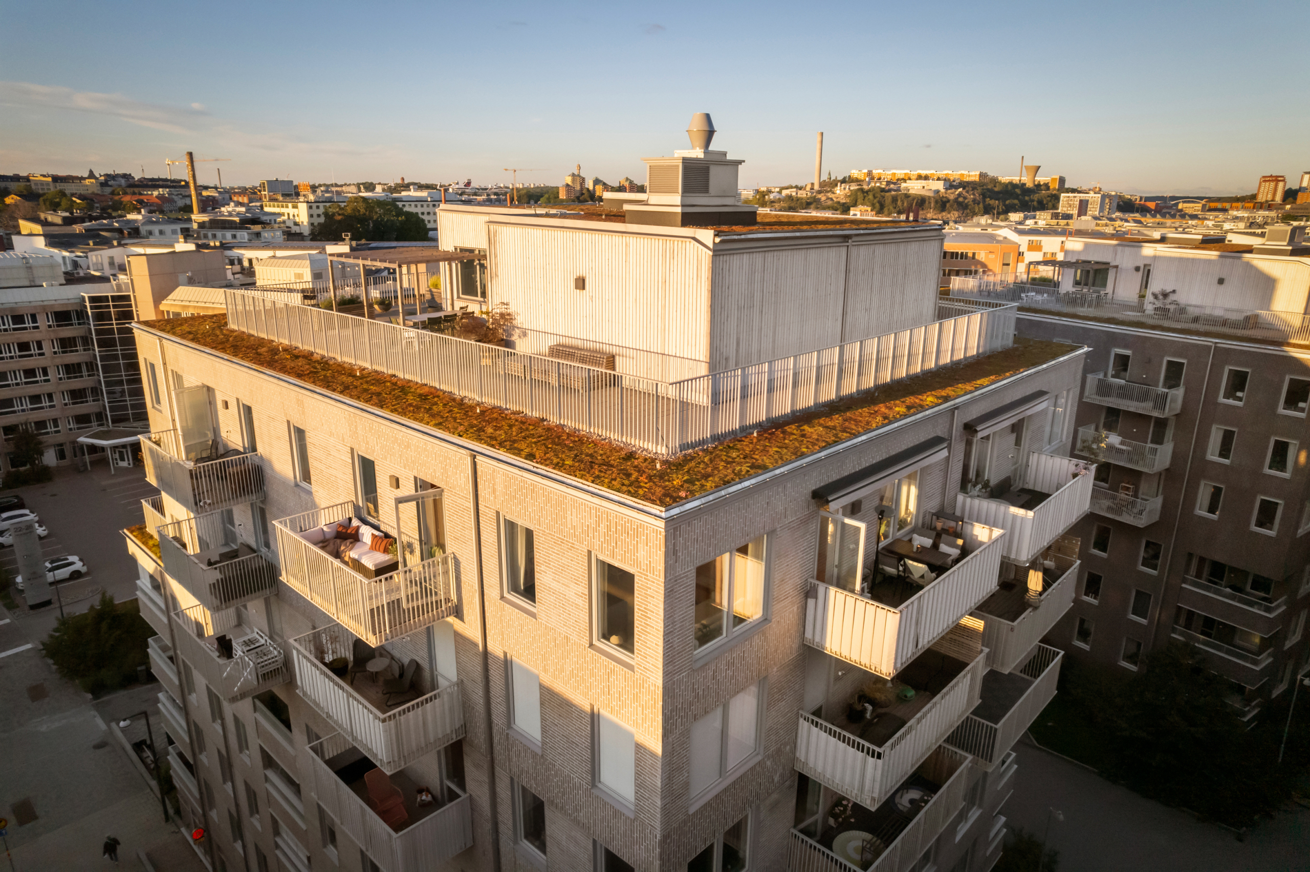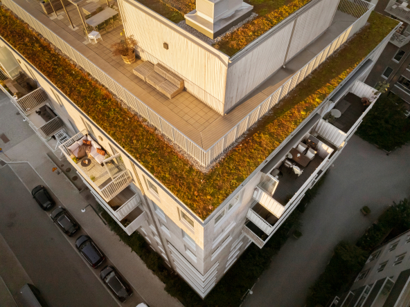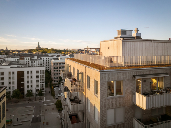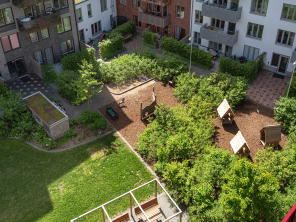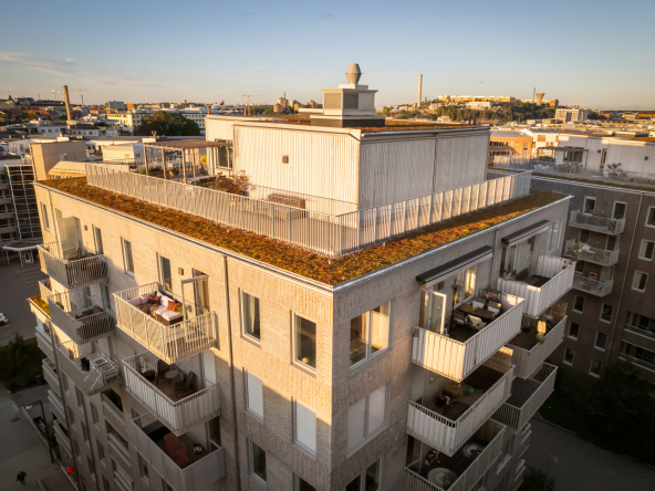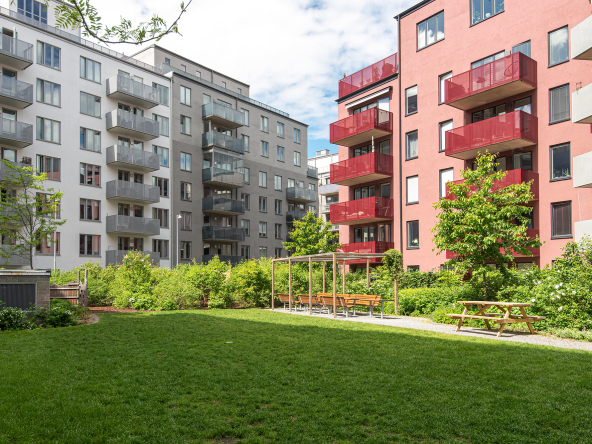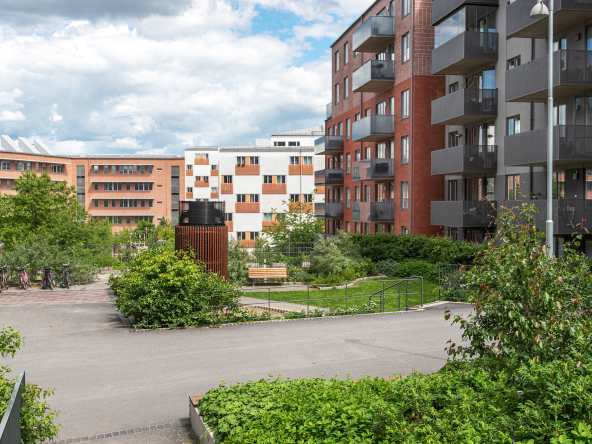 Föreningen kompletterar boendet perfekt med trevliga gemensamma faciliteter såsom takterrasser och innergård. En extra stark fördel är att föreningen även kan erbjuda garageplatser för dig med bil.