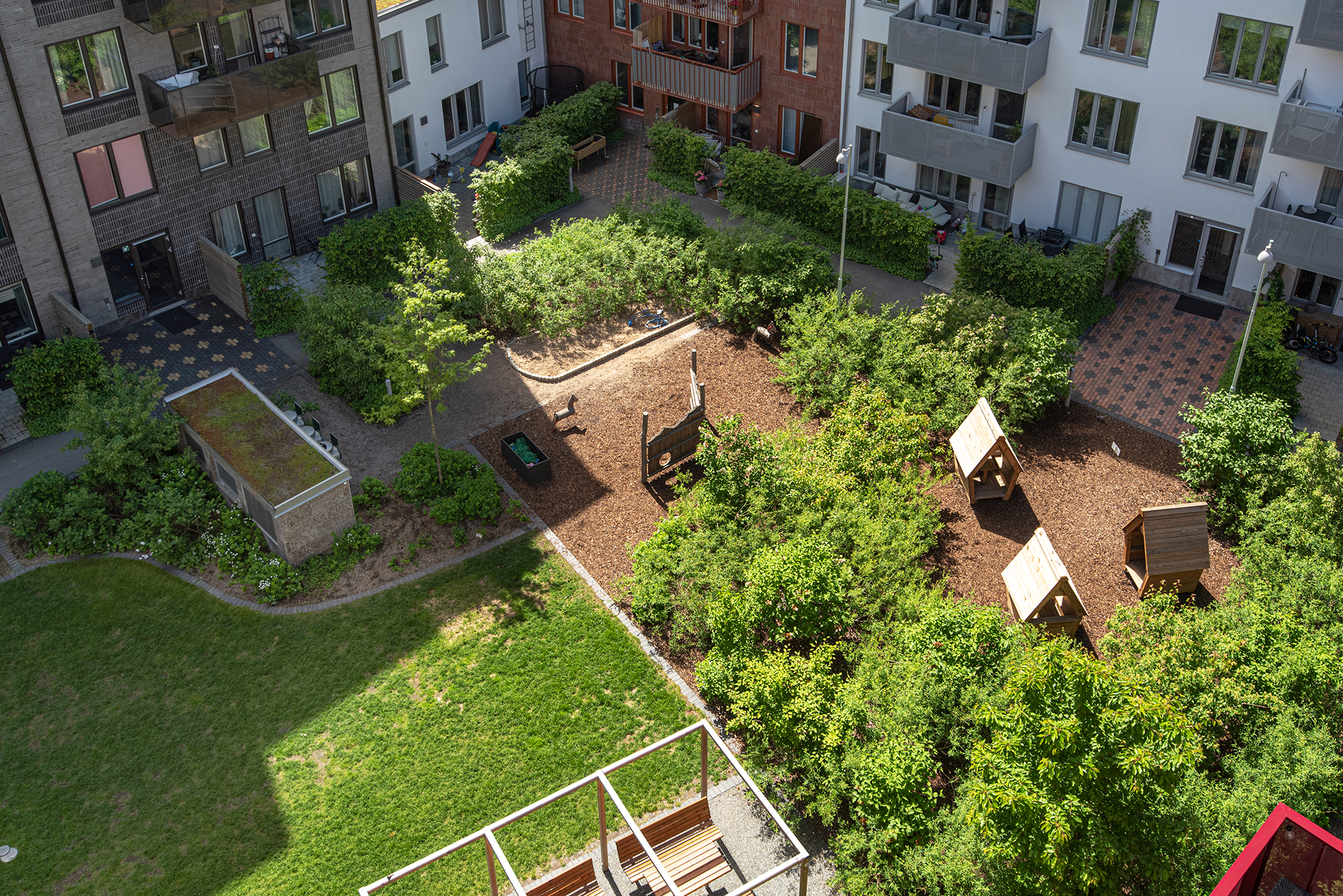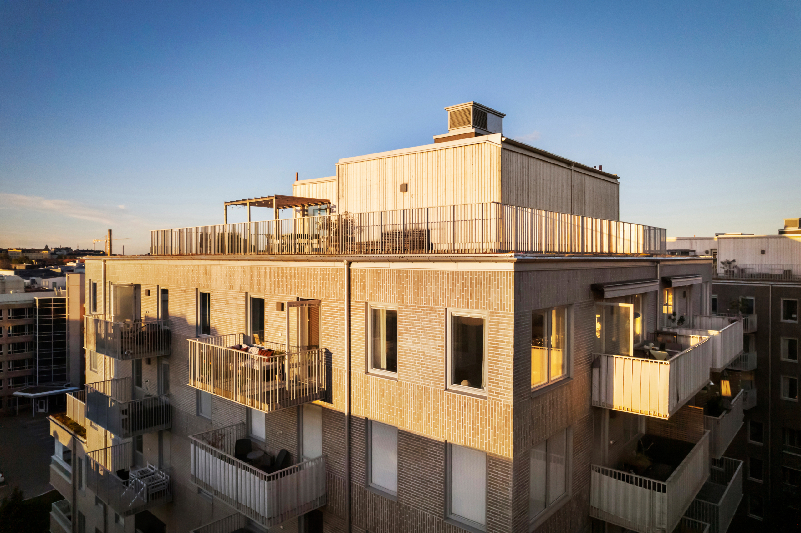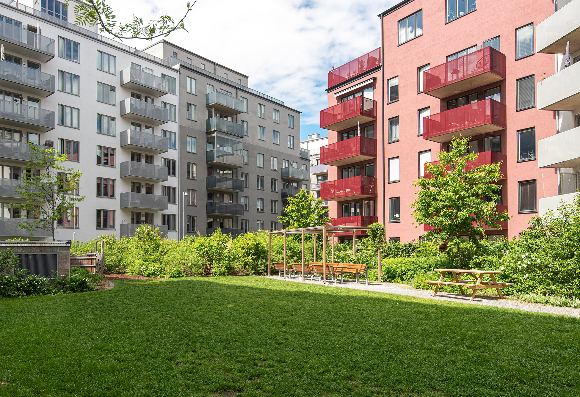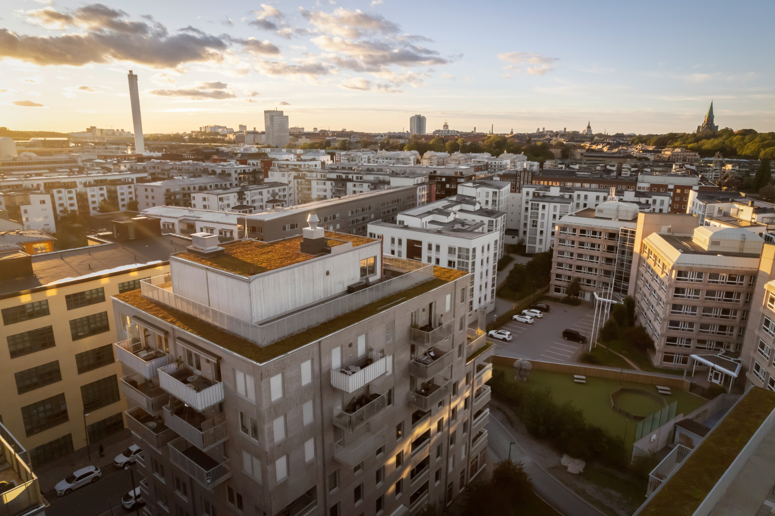 Föreningen kompletterar boendet perfekt med trevliga gemensamma faciliteter såsom takterrasser och innergård. En extra stark fördel är att föreningen även kan erbjuda garageplatser för dig med bil.