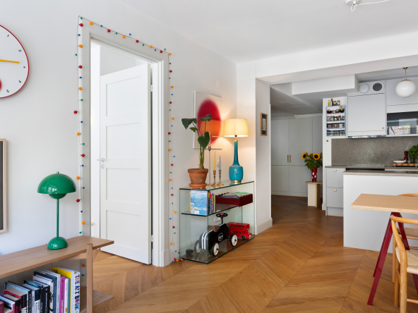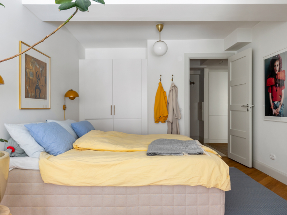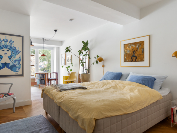 Hela hemmet genomgick en totalomvandling 2022 och stoltserar med bl.a. genomgående vackra parkettgolv, stora fönsterpartier från golv till tak, ett påkostat och generöst kök med bänkskiva i kalksten, stilfullt och rymligt badrum, stort master bedroom med möjlighet att skapa ytterligare ett rum, samt gott om smarta förvaringslösningar.