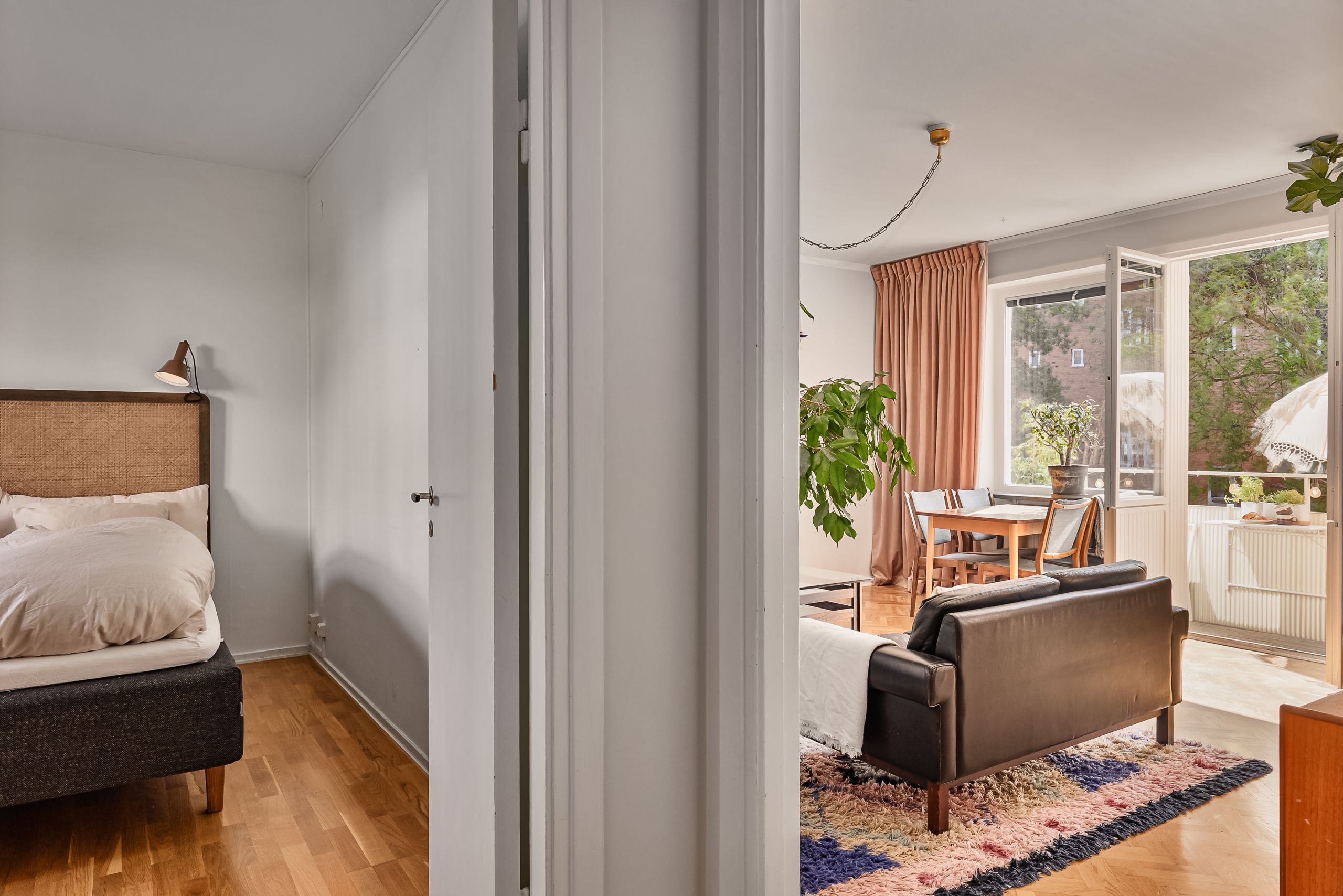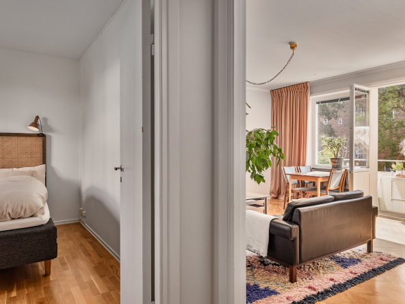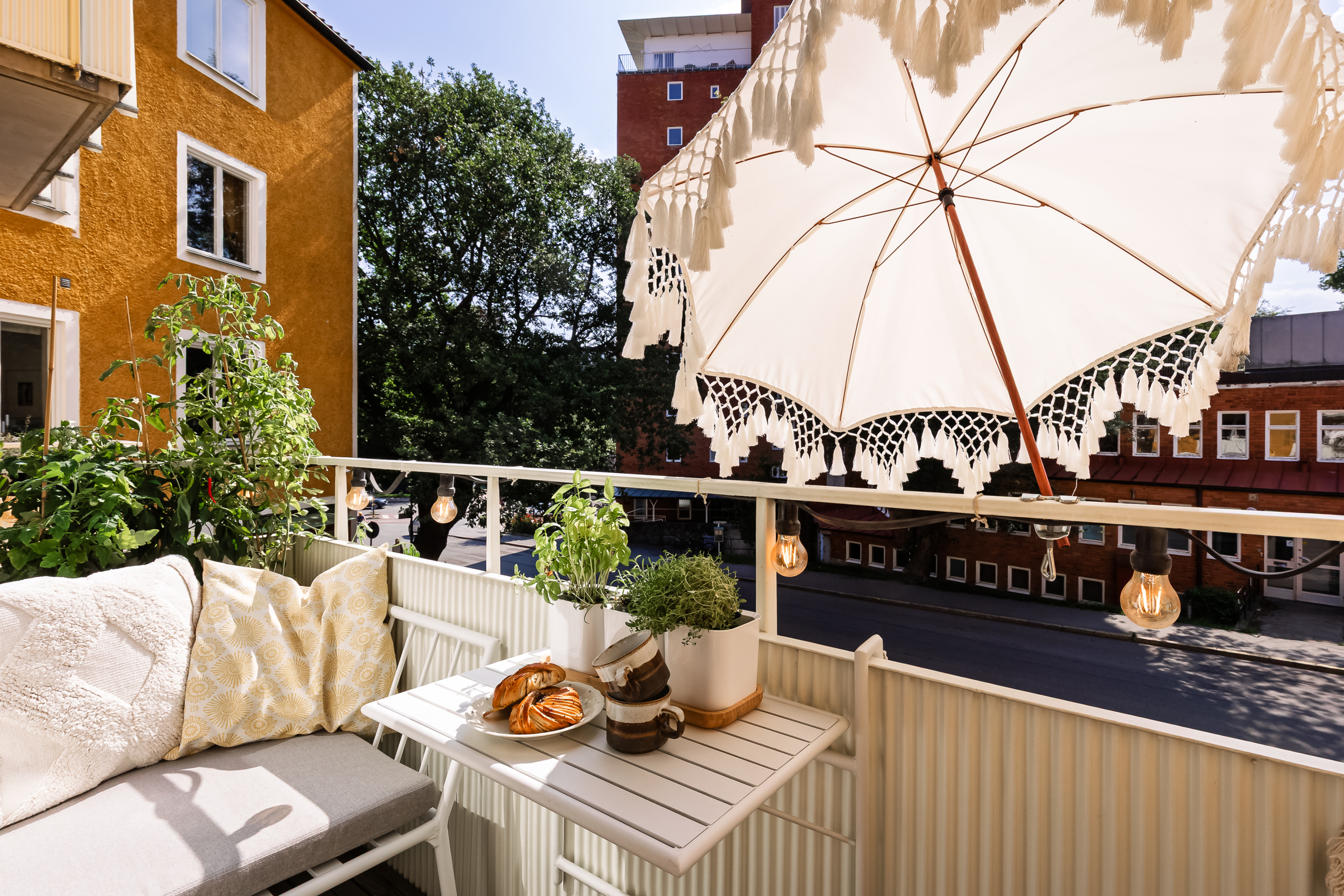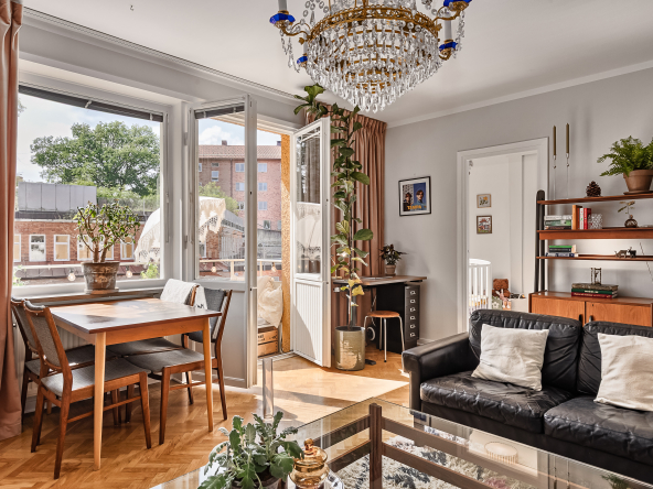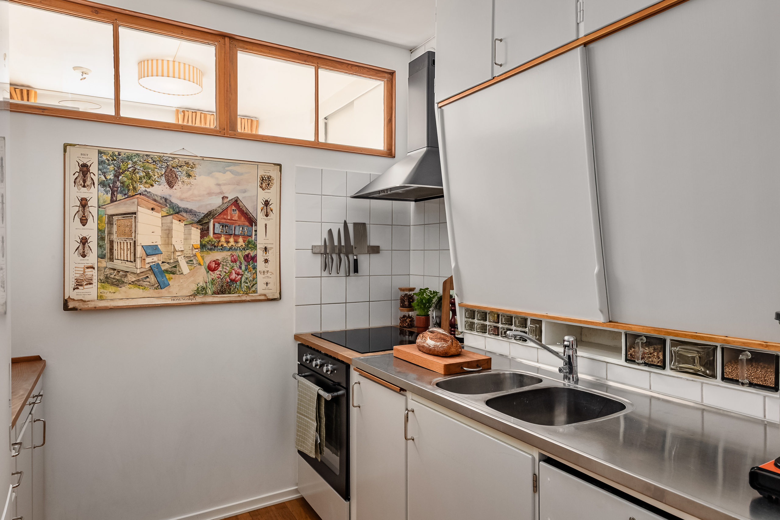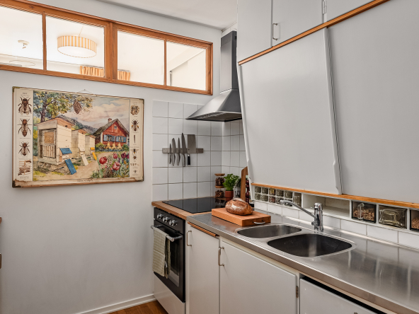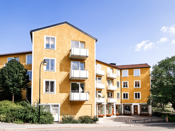 Med stor stolthet presenterar jag denna unika mini-3:a i eftertraktade Stjärnhusen. Souterrängläget innebär att du slipper trappor för att nå bostaden, samtidigt som du från balkongen – i soldränkt västläge – befinner dig en trappa upp. En ovanlig kombination som gör hemmet till något alldeles extra.