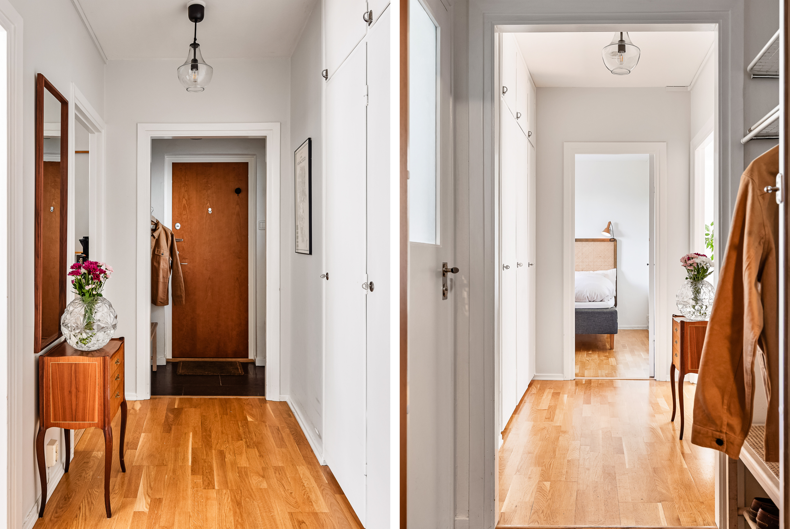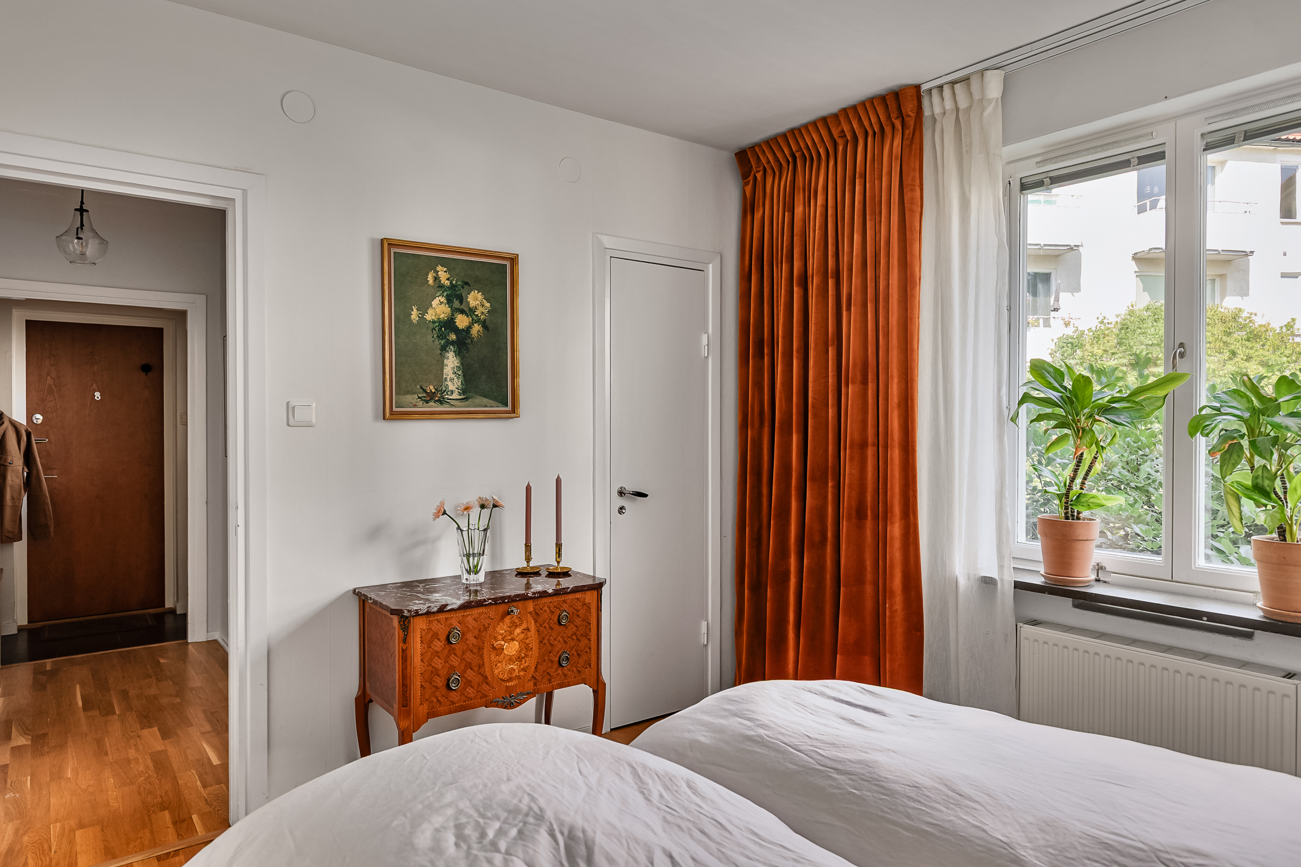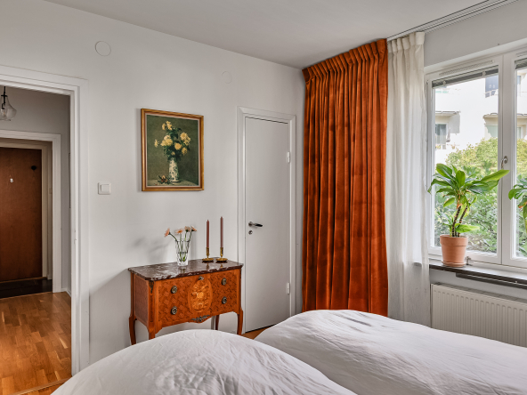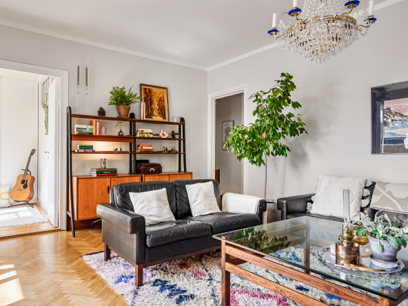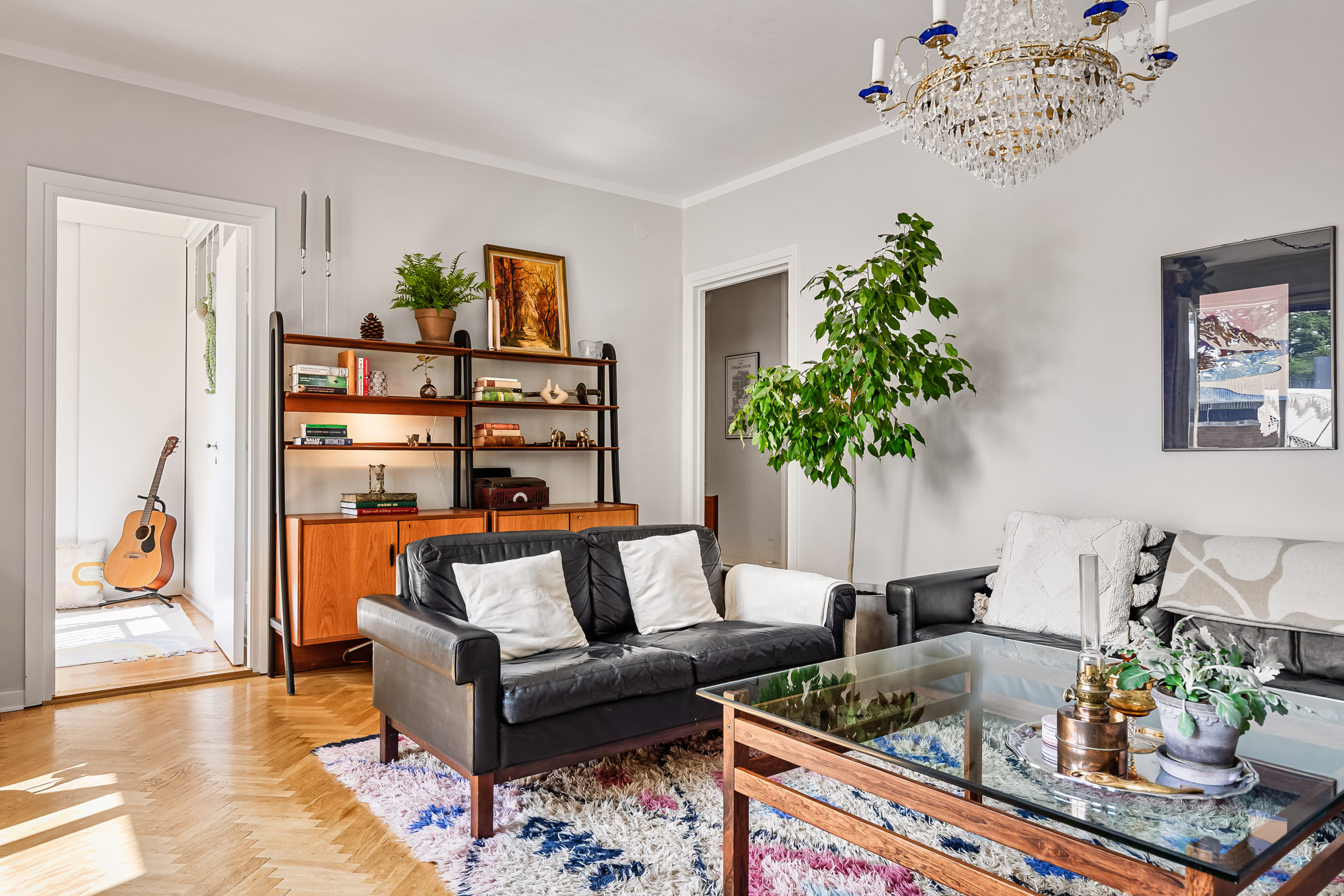 Bostaden är i genomgående gott skick och har bevarat vackra detaljer såsom fiskbensparkett. Här finns gott om förvaring och bekvämligheter som tvättmaskin och diskmaskin, vilket gör vardagen enkel och smidig.