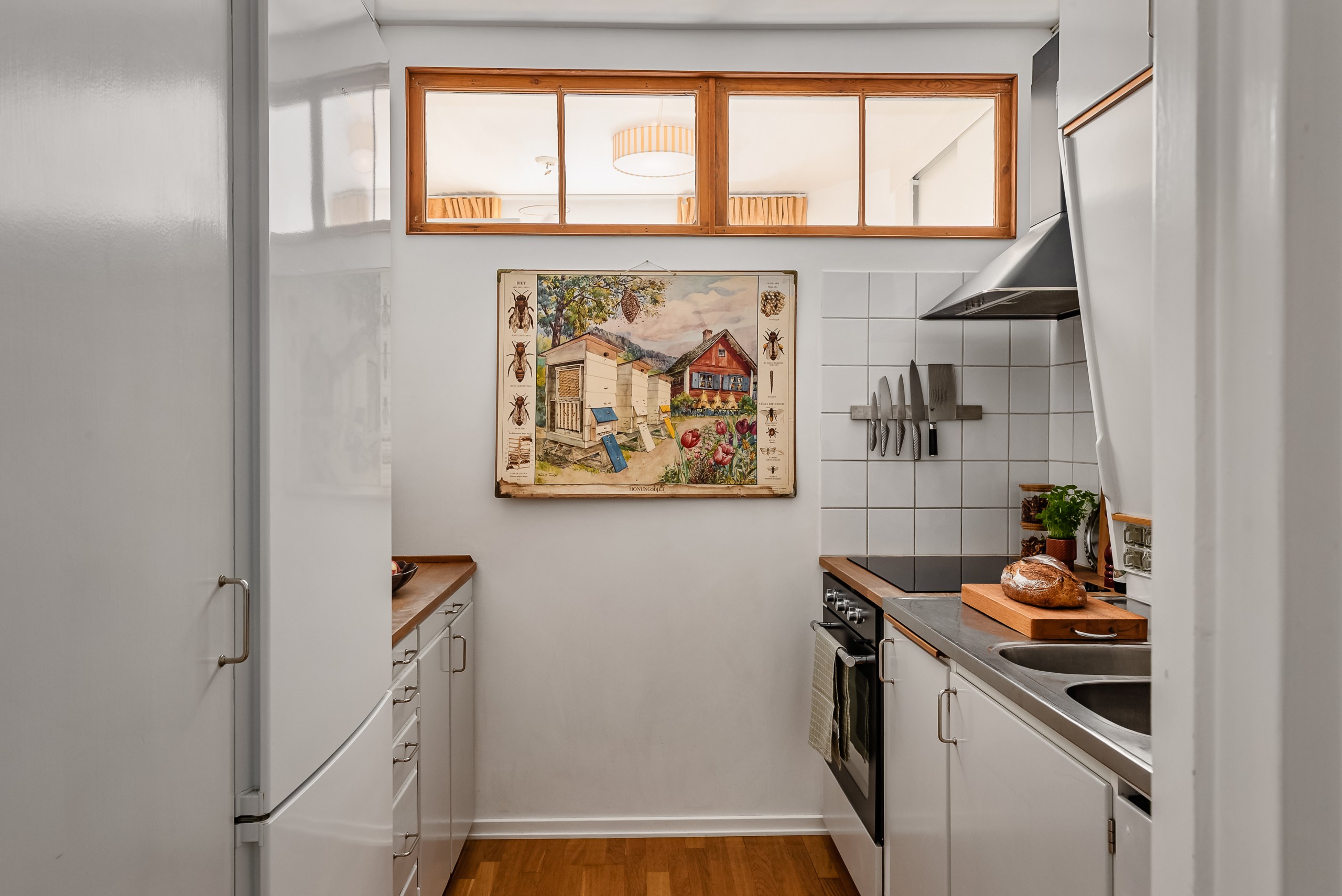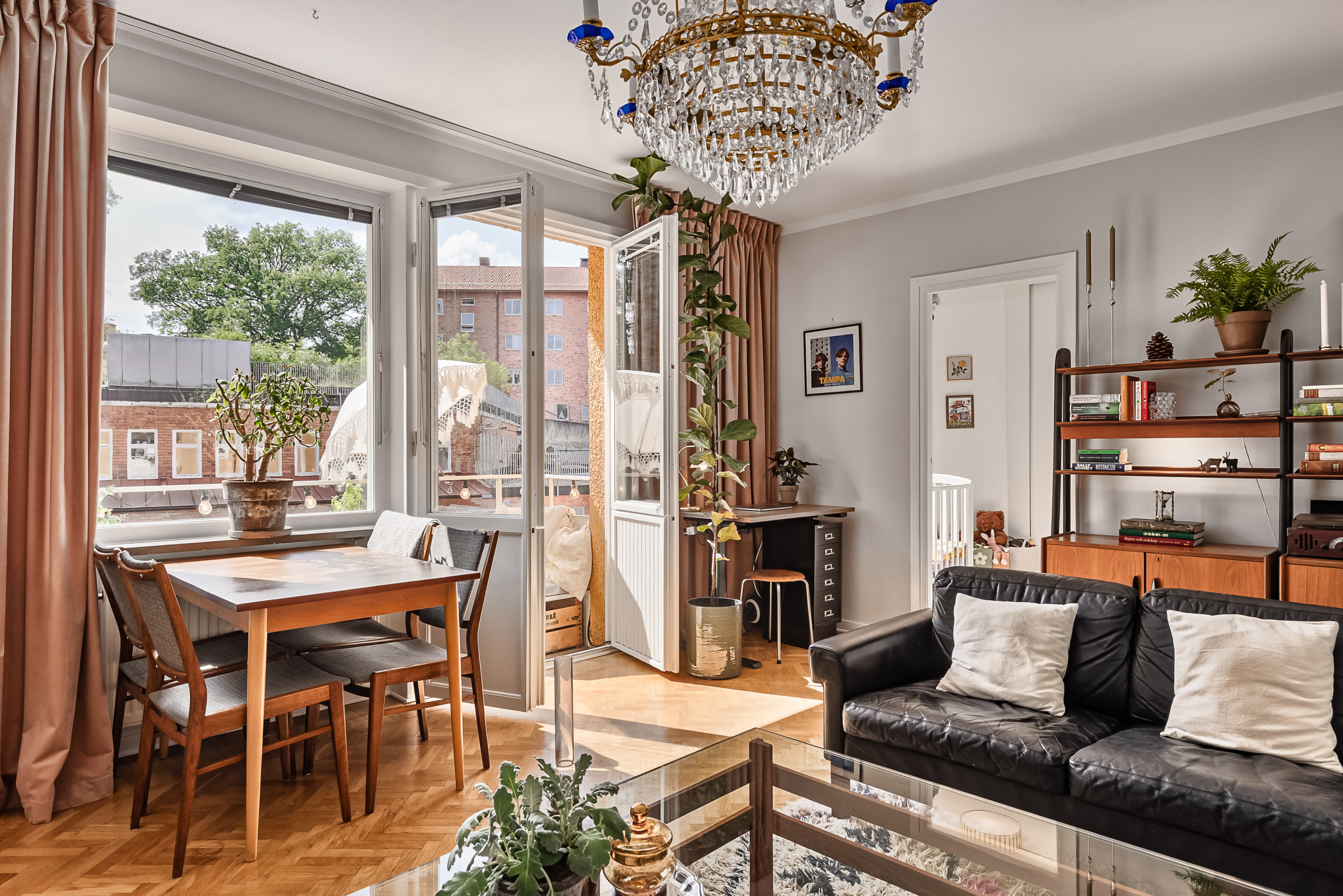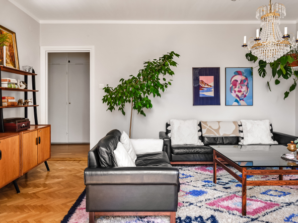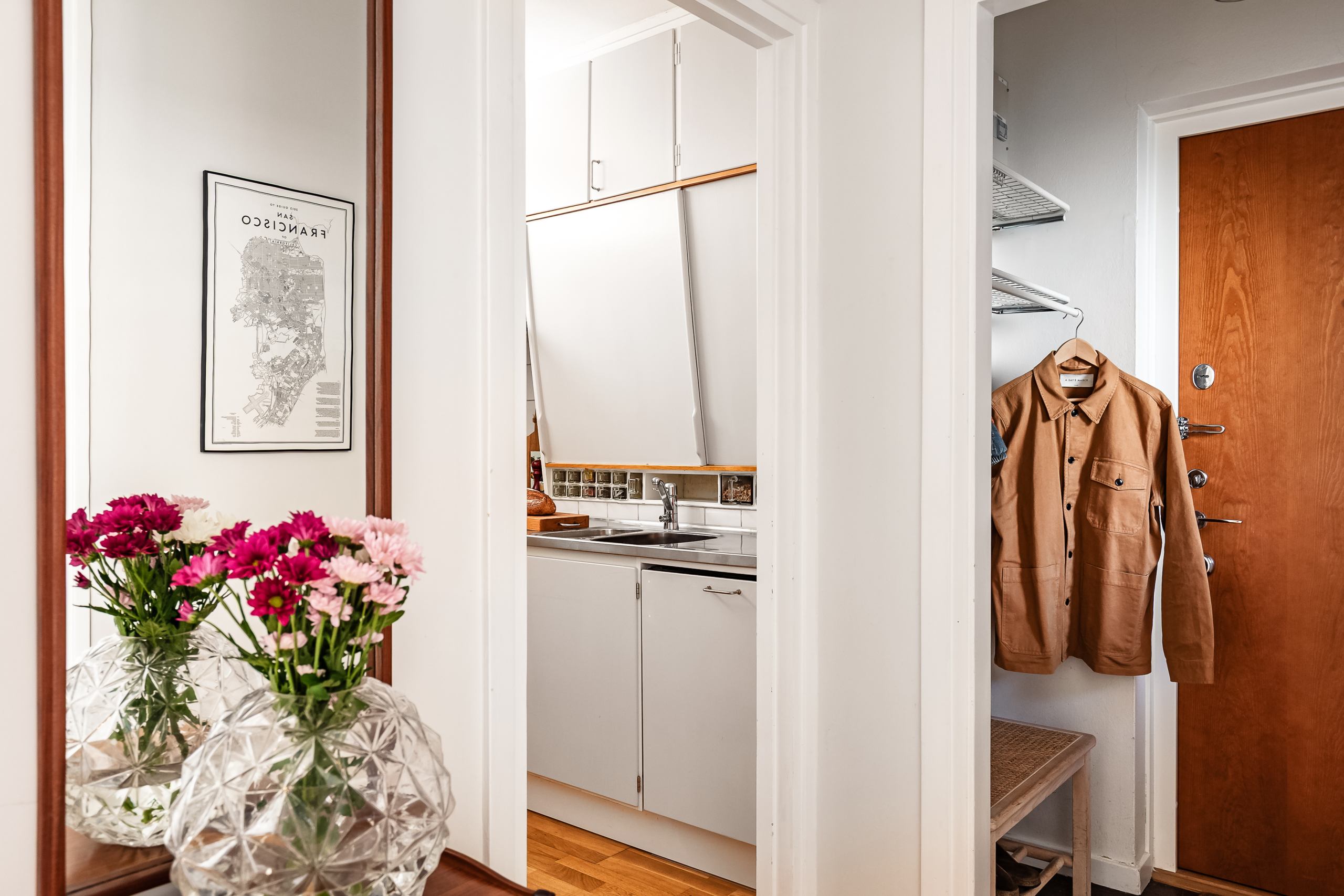 Bostaden är i genomgående gott skick och har bevarat vackra detaljer såsom fiskbensparkett. Här finns gott om förvaring och bekvämligheter som tvättmaskin och diskmaskin, vilket gör vardagen enkel och smidig.