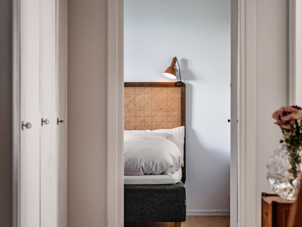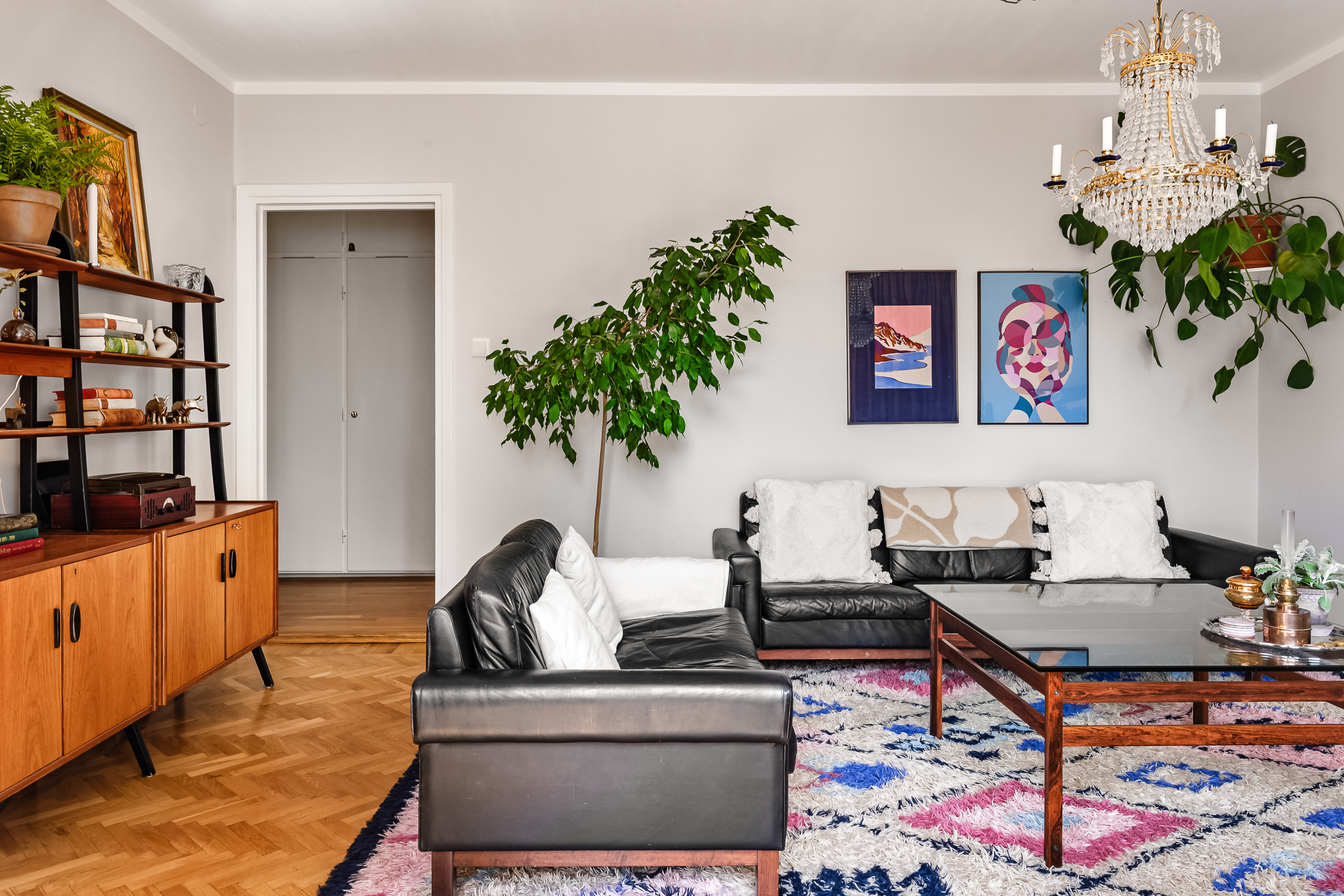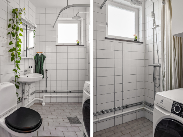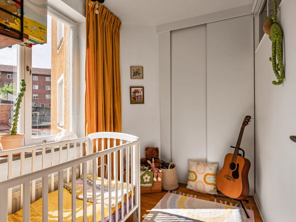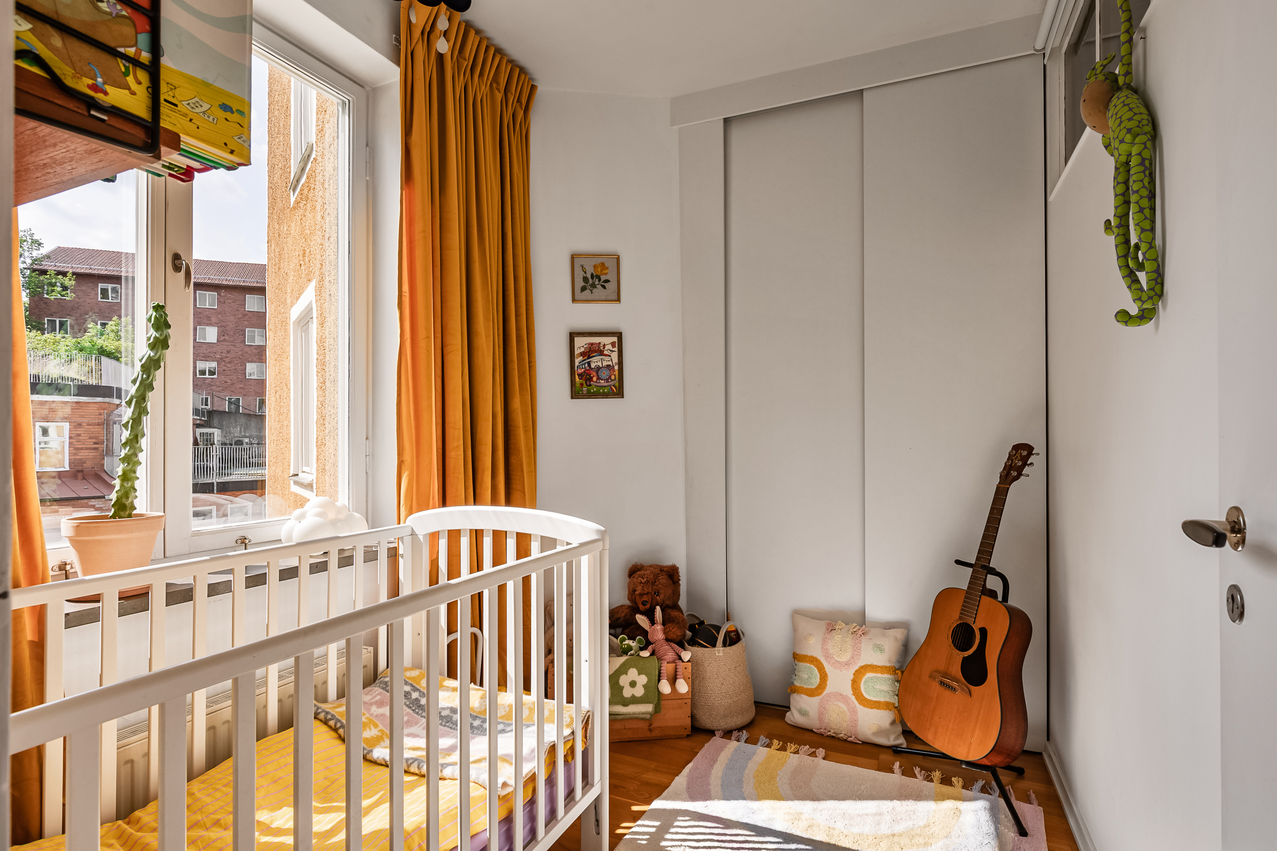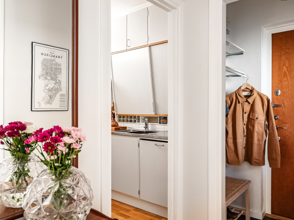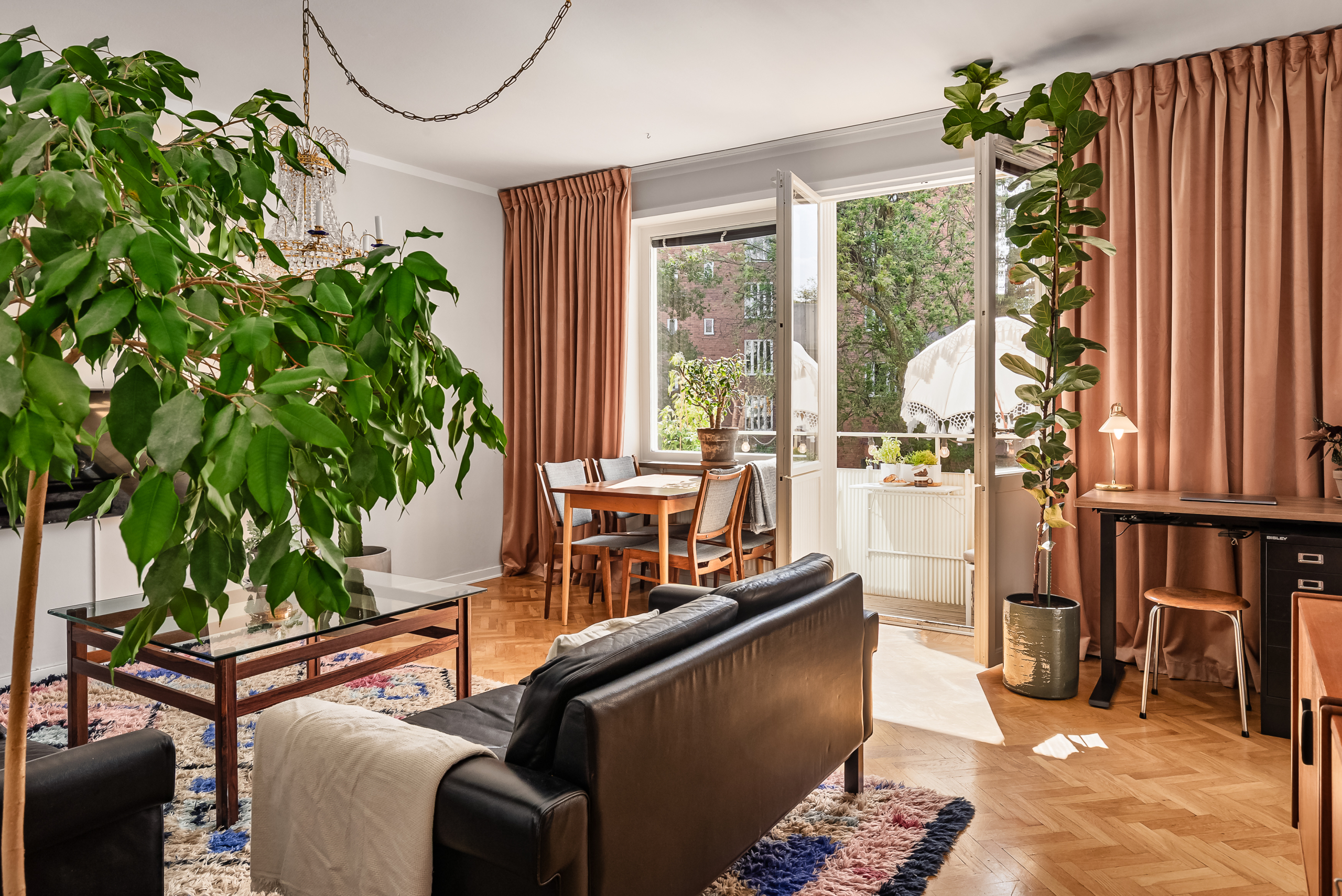 Bostaden är i genomgående gott skick och har bevarat vackra detaljer såsom fiskbensparkett. Här finns gott om förvaring och bekvämligheter som tvättmaskin och diskmaskin, vilket gör vardagen enkel och smidig.