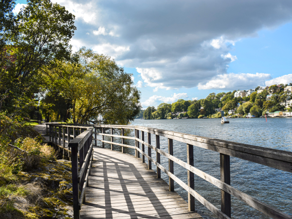 Området är idylliskt beläget vid Mälaren, med närhet till badplatser (3 minuters promenad), båtliv och natursköna promenadstråk – samtidigt som storstadspulsen finns inom räckhåll. Gröndal erbjuder småstadskänsla med caféer, butiker, service och goda kommunikationer, men bevarar ändå sin lugna och gemytliga atmosfär.
