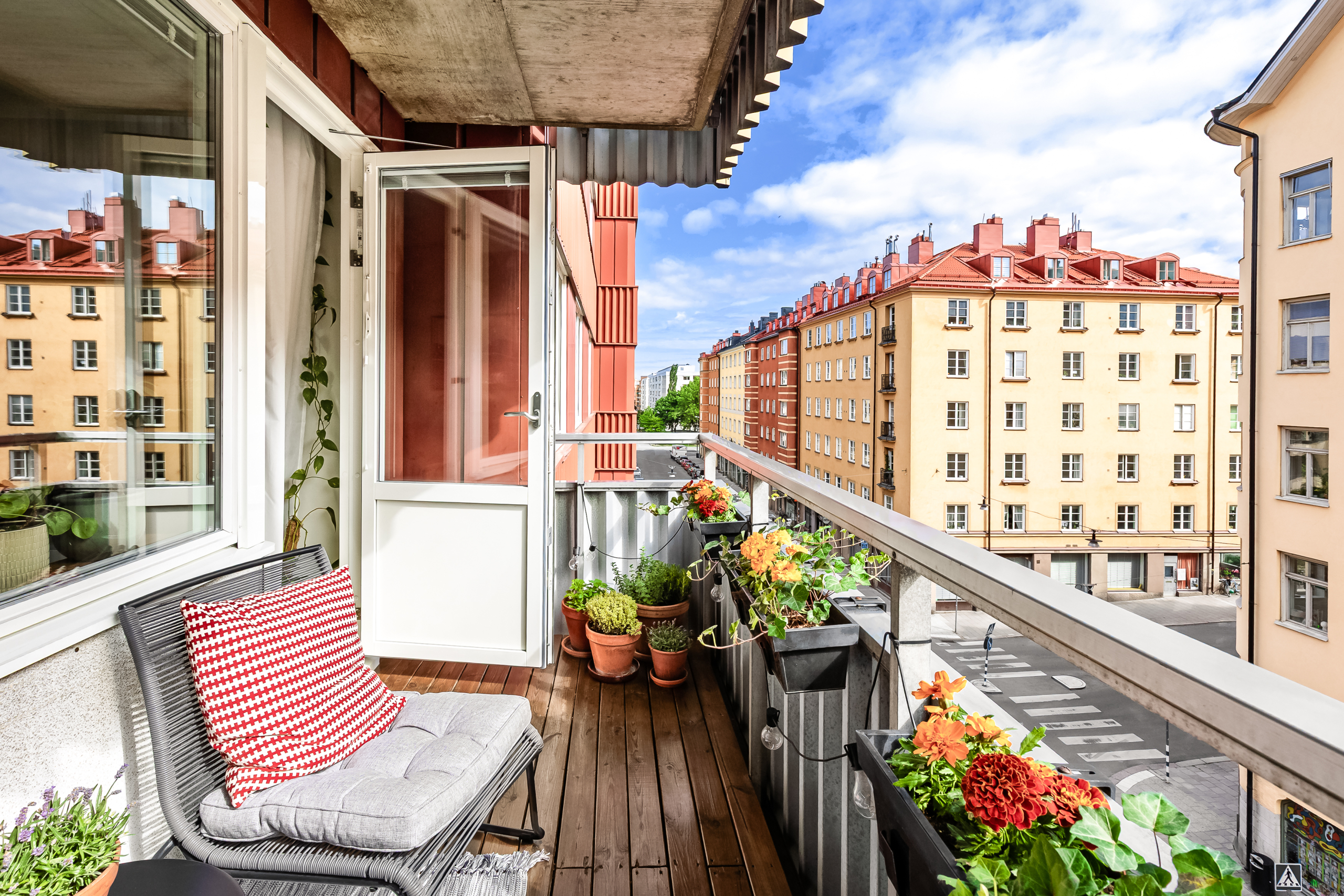 En rymlig och solig balkong, ett smakfullt renoverat kök med stora förvaringsmöjligheter och fullhögt skafferi – perfekt för matälskaren. Ett luftigt vardagsrum som lämpar sig utmärkt för sociala tillställningar, ett rofyllt sovrum, generöst badrum samt mycket goda förvaringslösningar.