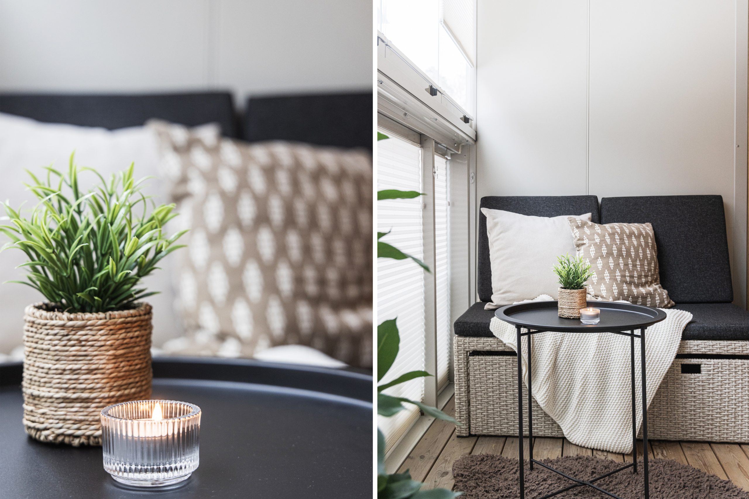 Det smarta L-formade köket med bardel skapar en elegant avdelning mot det rymliga vardagsrummet, samtidigt som den sociala och öppna planlösningen bevaras. Sovrummet är generöst tilltaget med mycket goda förvaringsmöjligheter. Den inglasade balkongen blir som ett extra rum större delen av året.