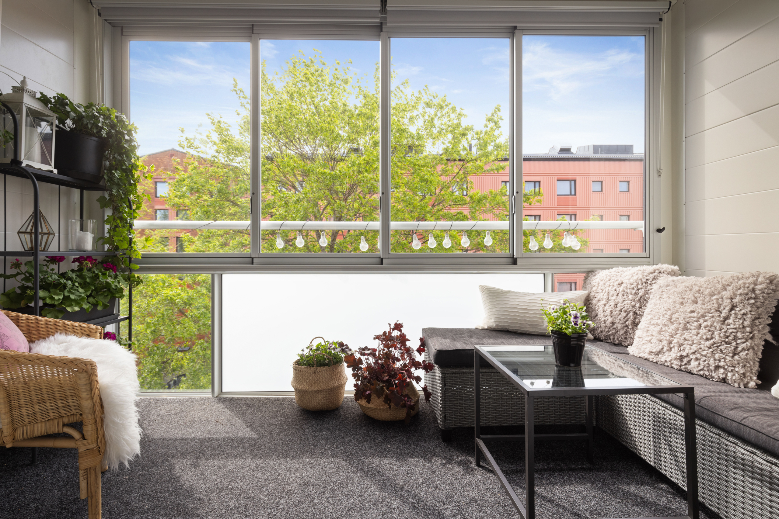 Bostaden är genomgående i gott skick, och den stora inglasade balkongen imponerar med sin generösa storlek och det grönskande läget utanför – ett perfekt extrarum där du verkligen kan förlänga sommarhalvåret.