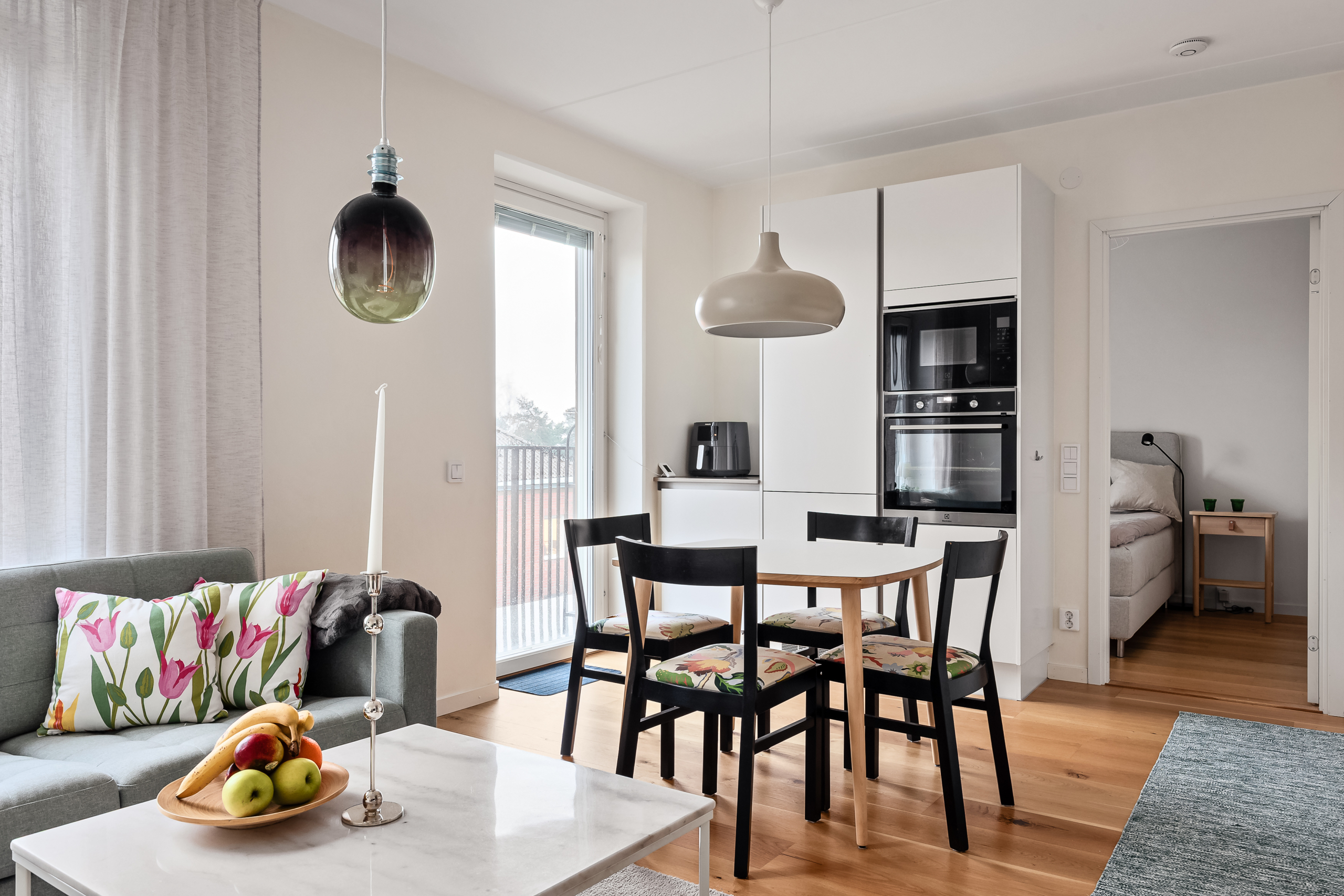 På bara några minuter nås Hökarängen, Farsta centrum, Gubbängen och Skarpnäck - alla med ett stort utbud av service, shopping och restauranger