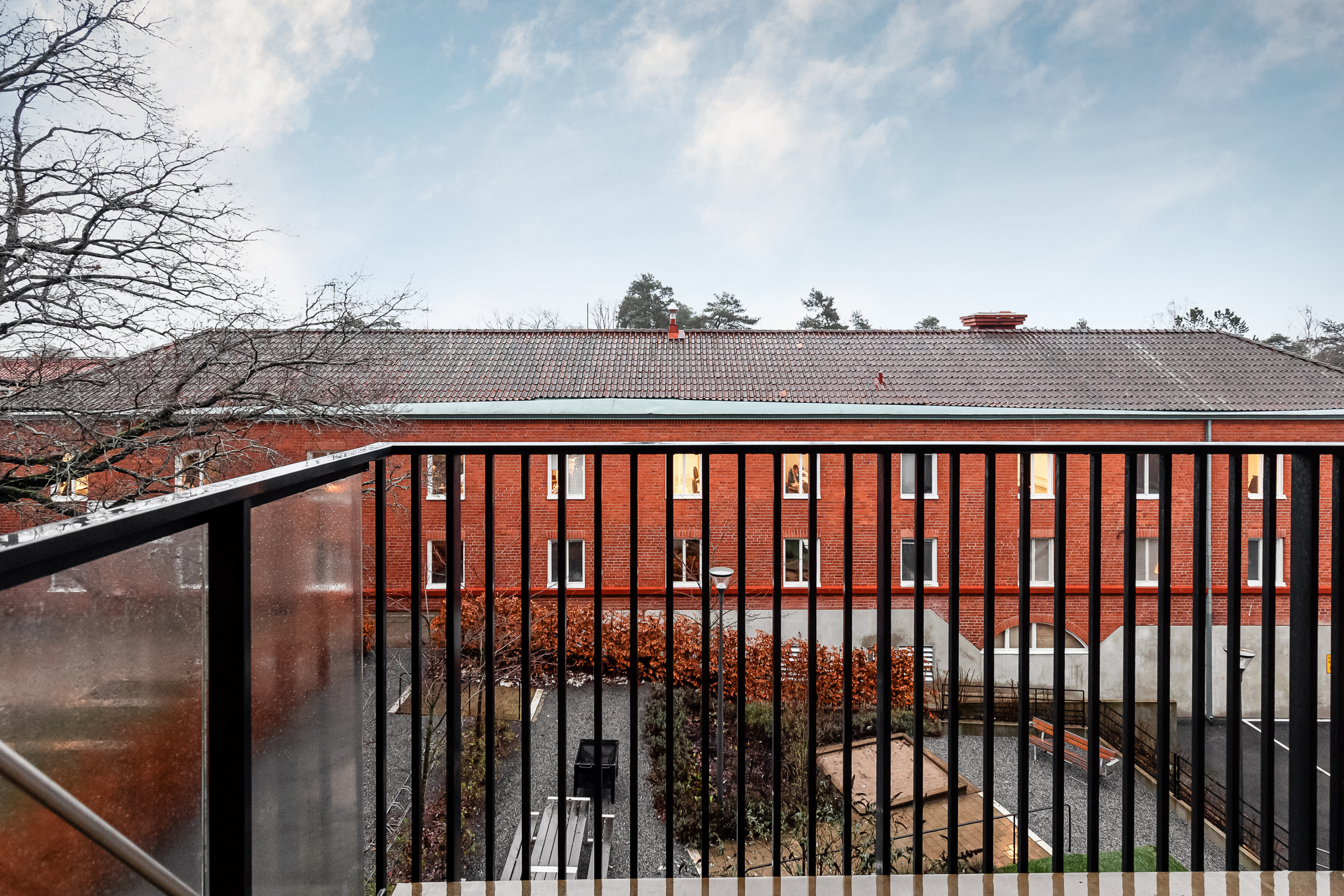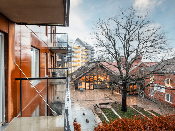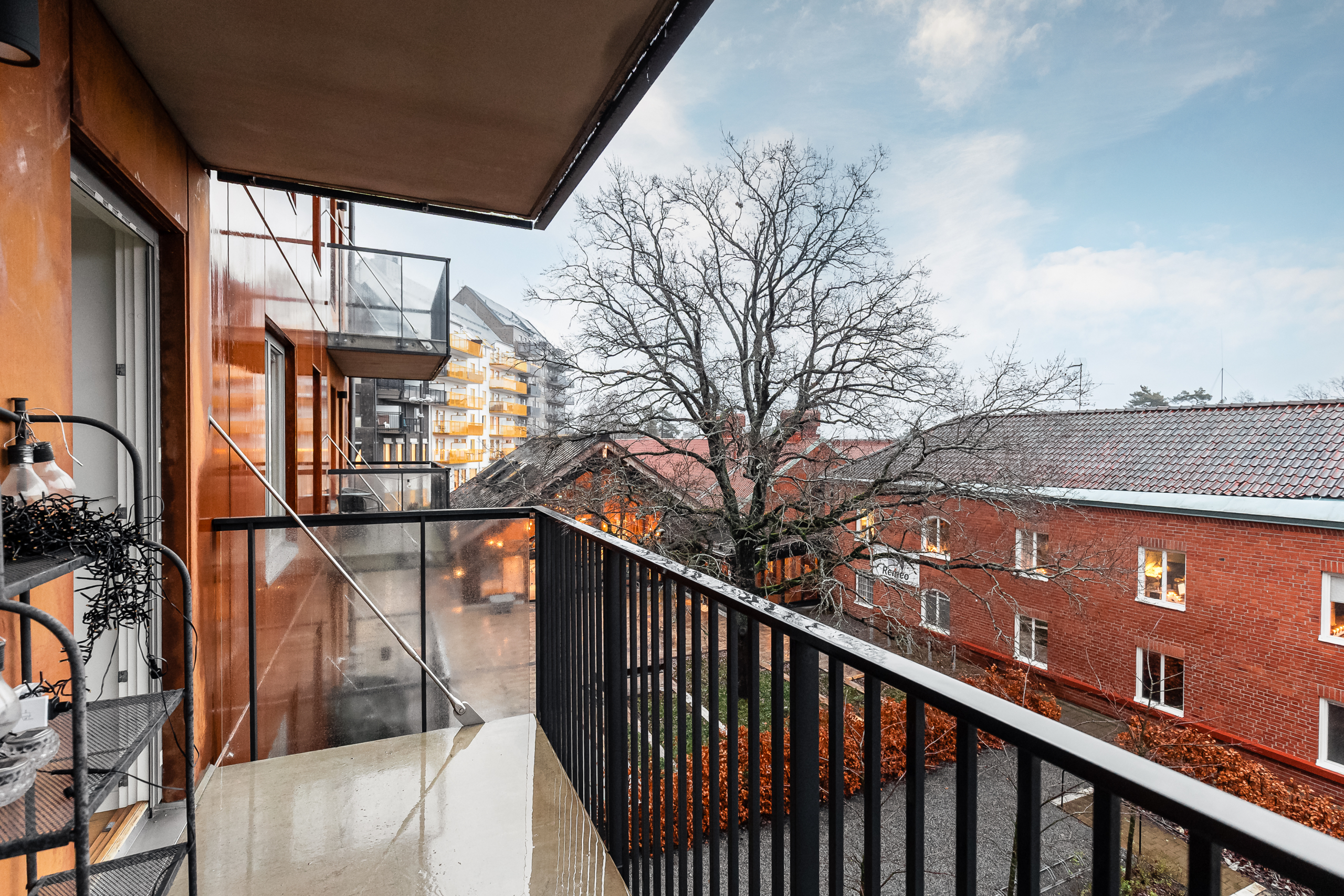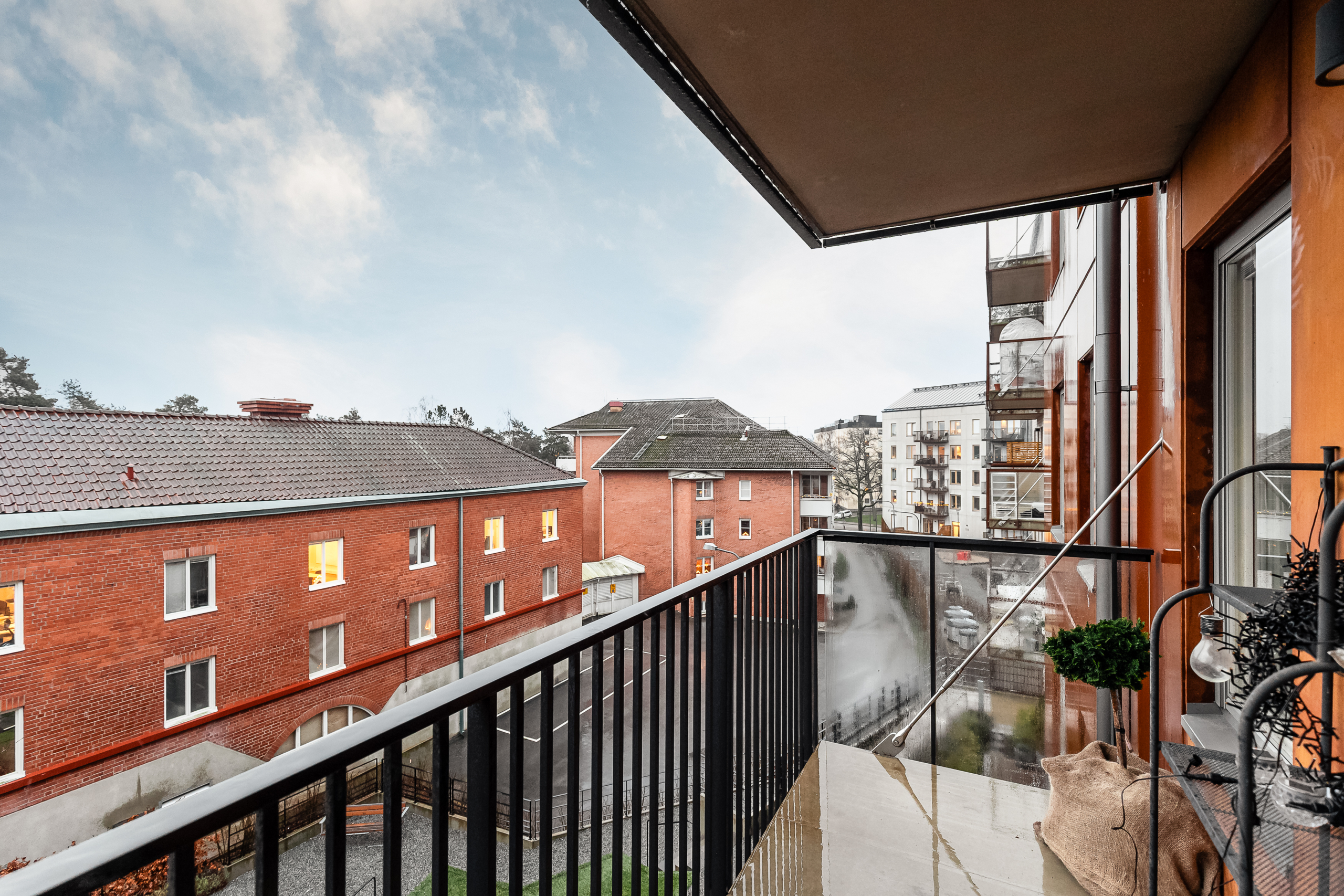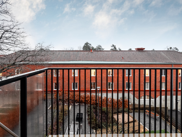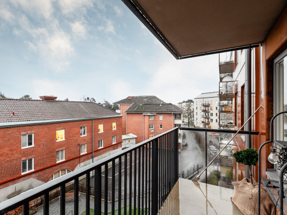 Balkong i solläge med plats för bord & stolar eller annat önskat möblemang.