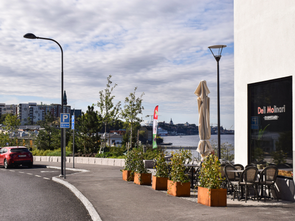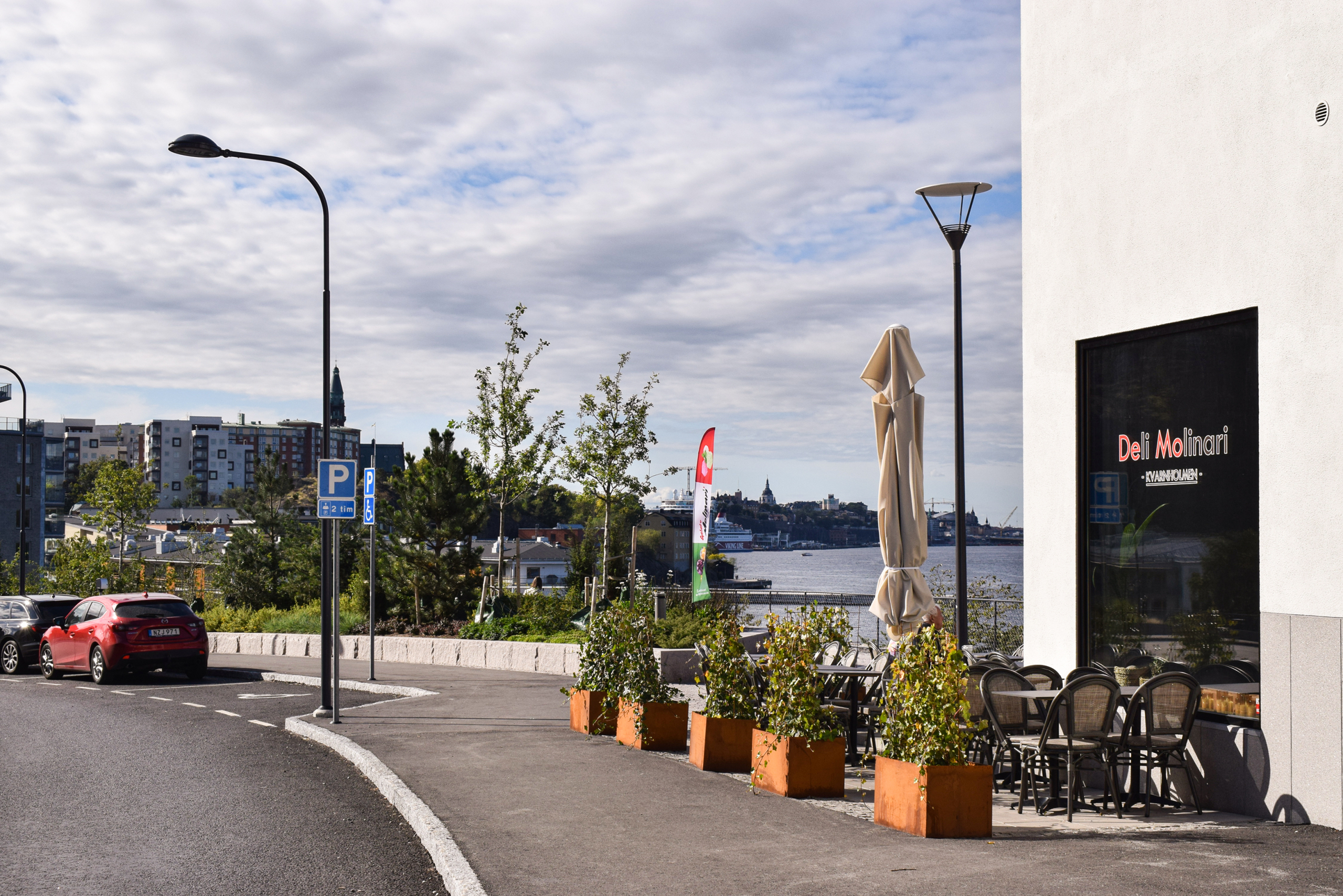 Här bor du i ett lugnt och färdigbyggt område med närhet till vattnet, utegym, grillplatser och solytor längs kajen. På södra sidan av ön utvecklas just nu en ny marina och eventuella framtida restaurangstråk. Redan idag finns här allt du kan tänkas behöva: mataffär (Coop), vårdcentral (utsedd till en av Sveriges bästa 2020), apotek, gym, bageri, caféer och flera restauranger.