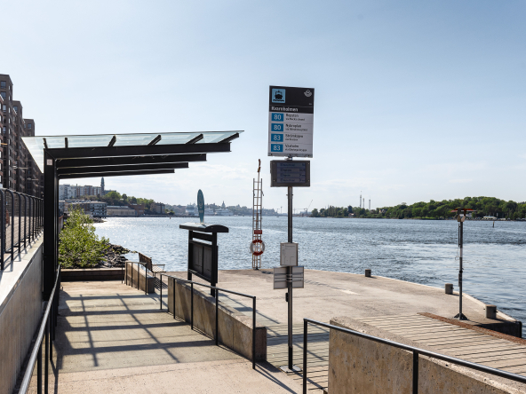 Kommunikationerna är utmärkta – SL-båten tar dig smidigt till stan (Nybrokajen), samtidigt som bussar avgår frekvent från öns centrum till bland annat Slussen och Nacka Forum.