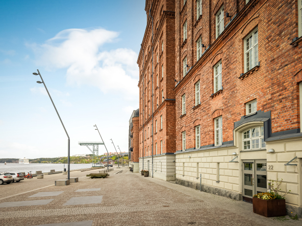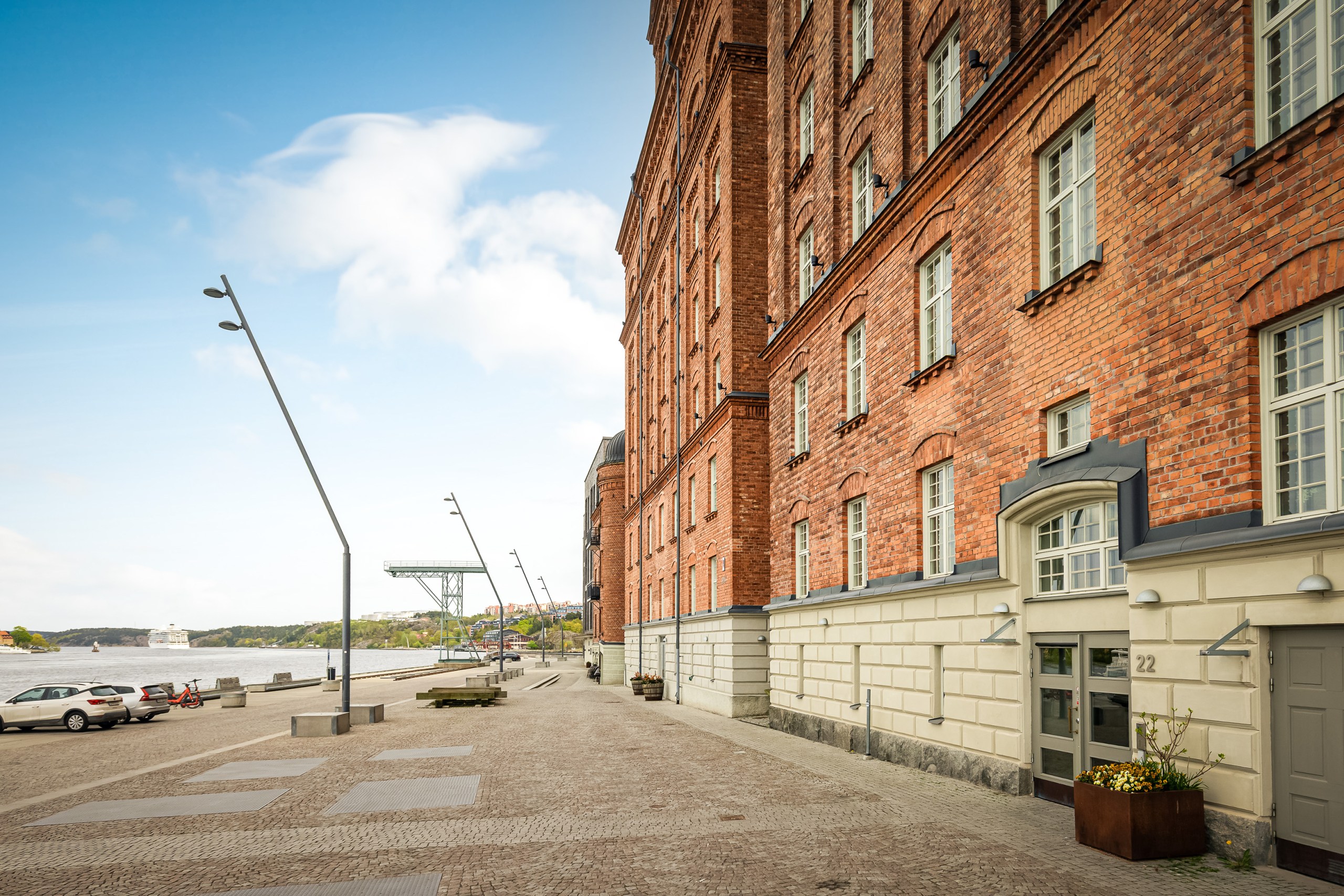 Fastigheten är en vacker, konverterad byggnad från 1920 som byggdes om till bostäder 2013 – vilket ger dig det bästa av två världar där sekelskifte möter modernt. Och pricken över i:et? SL-båten ligger bokstavligen utanför porten och tar dig till stan på ca 15 minuter.