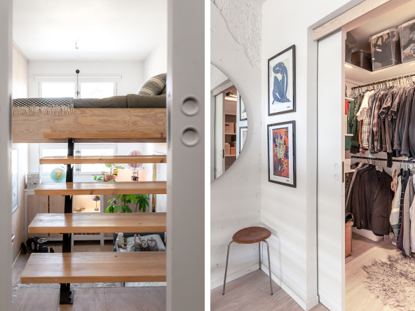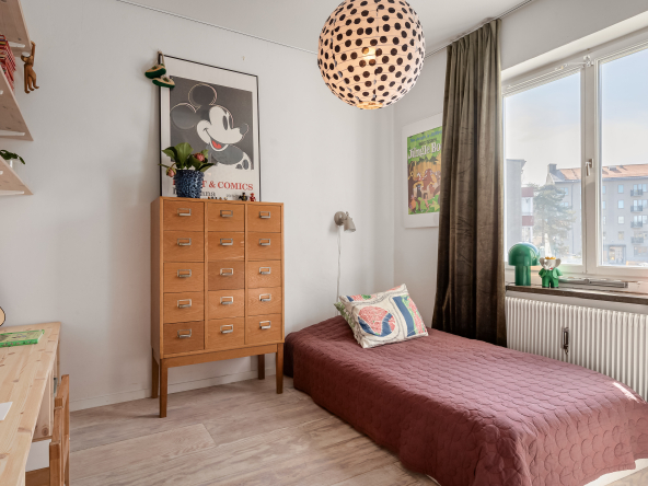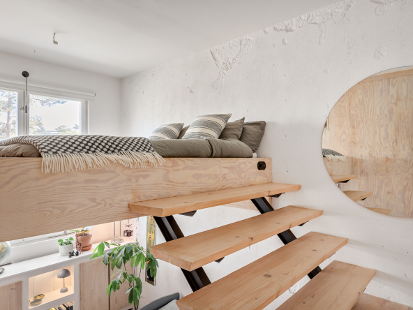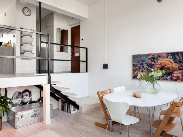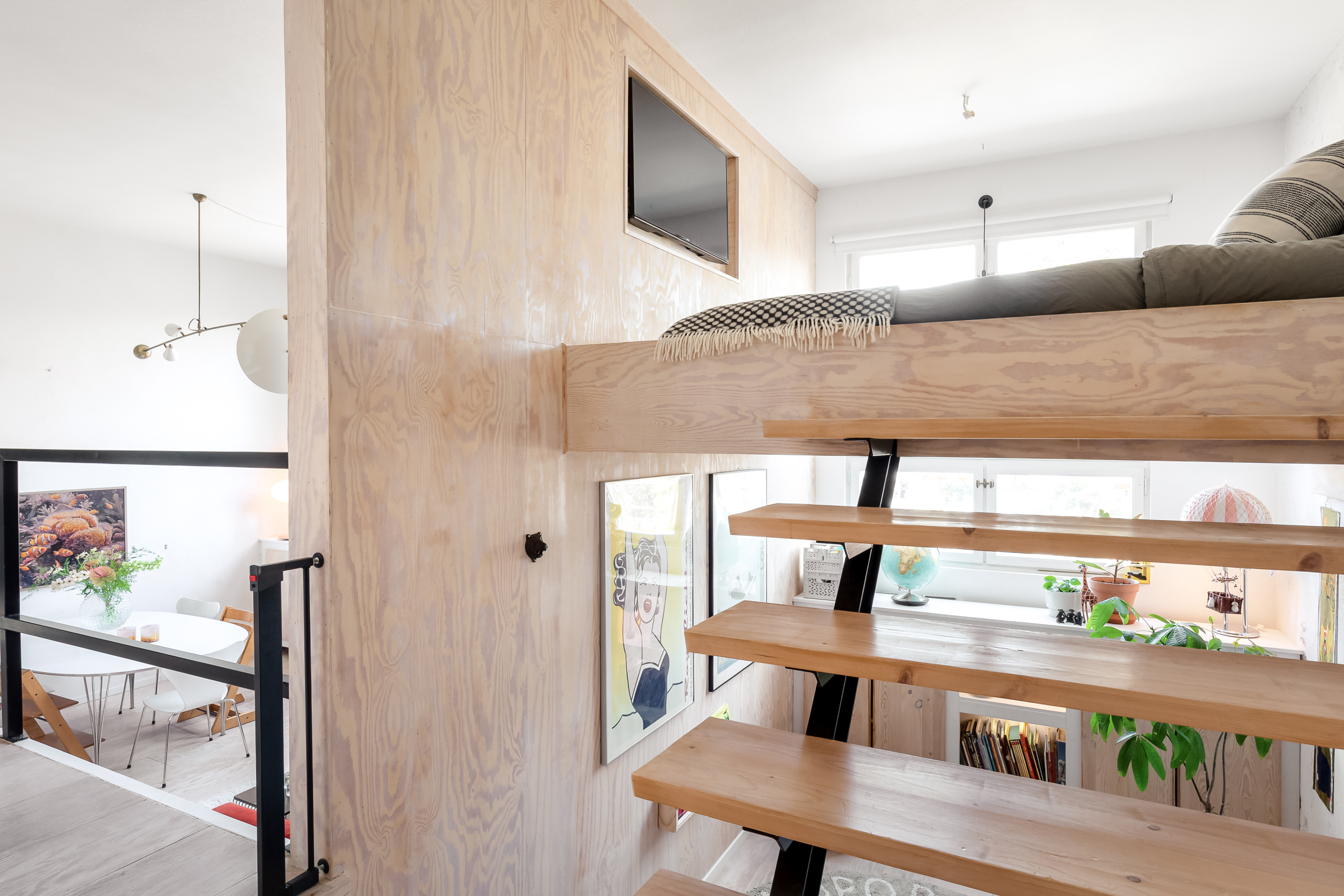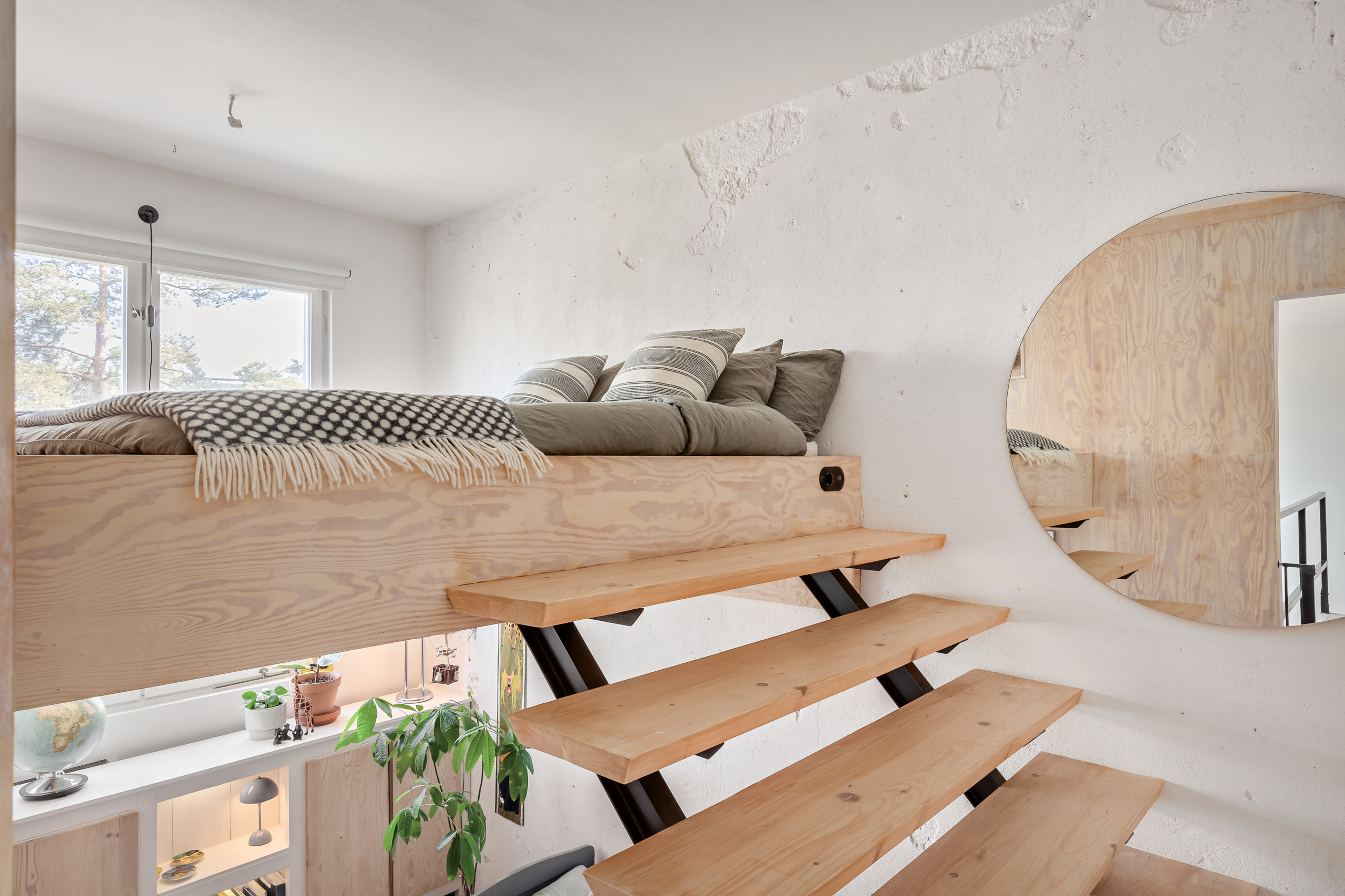 Bostaden är genomgående i gott skick och upplevs betydligt större än sina kvadratmeter tack vare volymen och de smarta lösningarna. Planlösningen är både funktionell och flexibel – perfekt för såväl familjeliv som sociala sammanhang. Det stilrena sovloftet erbjuder en extra sovplats, samtidigt som den generösa walk-in closeten och flera smarta förvaringslösningar gör vardagen smidig.